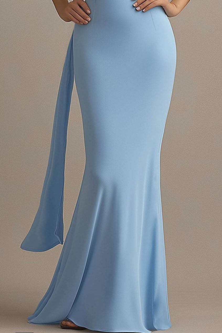 Formal Evening Scarf Dress Light Blue Mermaid Floor-Length Gown
