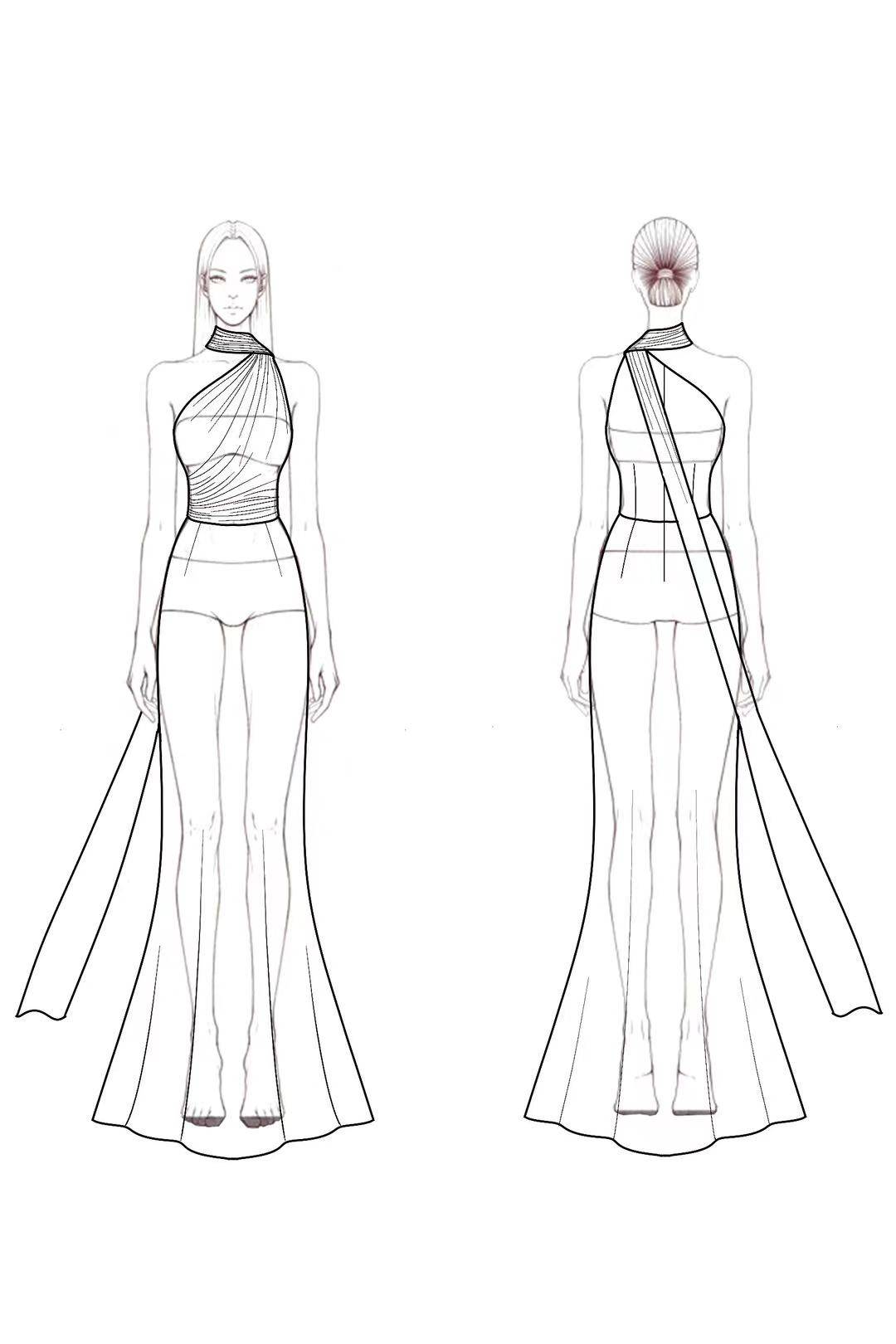 This light blue scarf dress combines refined grace and modern flair. Designed with a unique scarf neckline and mermaid silhouette, it flows to the floor with elegance—perfect for formal evenings and red-carpet occasions.
