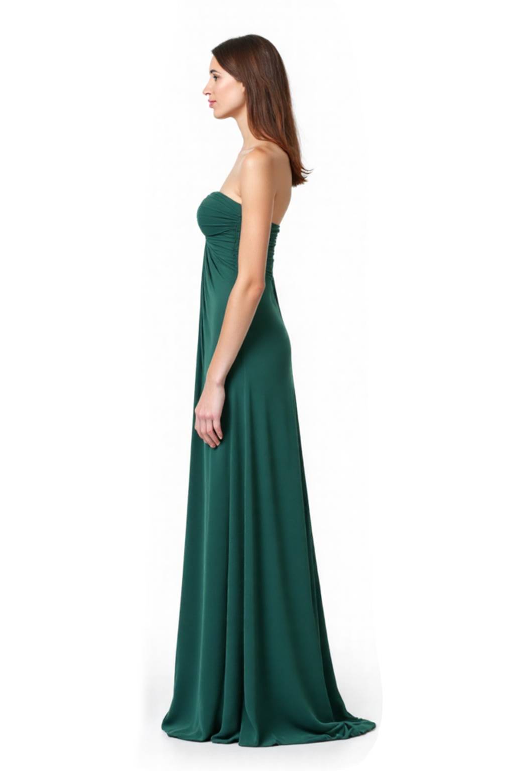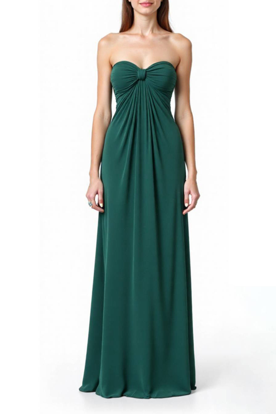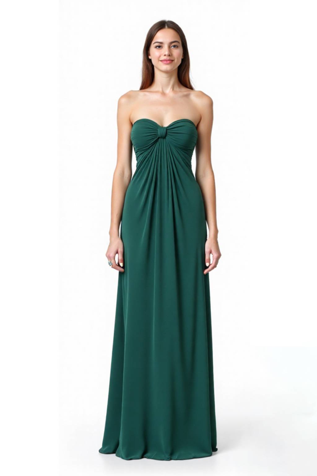 This dark green pleated strapless gown exudes elegance with its timeless design. The pleated fabric adds texture and movement, while the floor-length cut creates a graceful silhouette. Ideal for formal evening events, this dress is a perfect combination of classic style and modern sophistication, making it a standout choice for any elegant occasion.