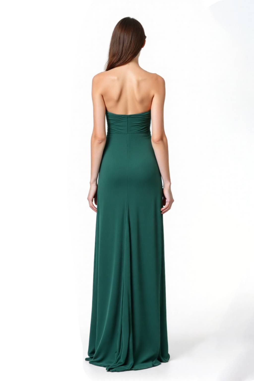 Formal Evening Strapless Dress Green Pleated Floor-Length Dress