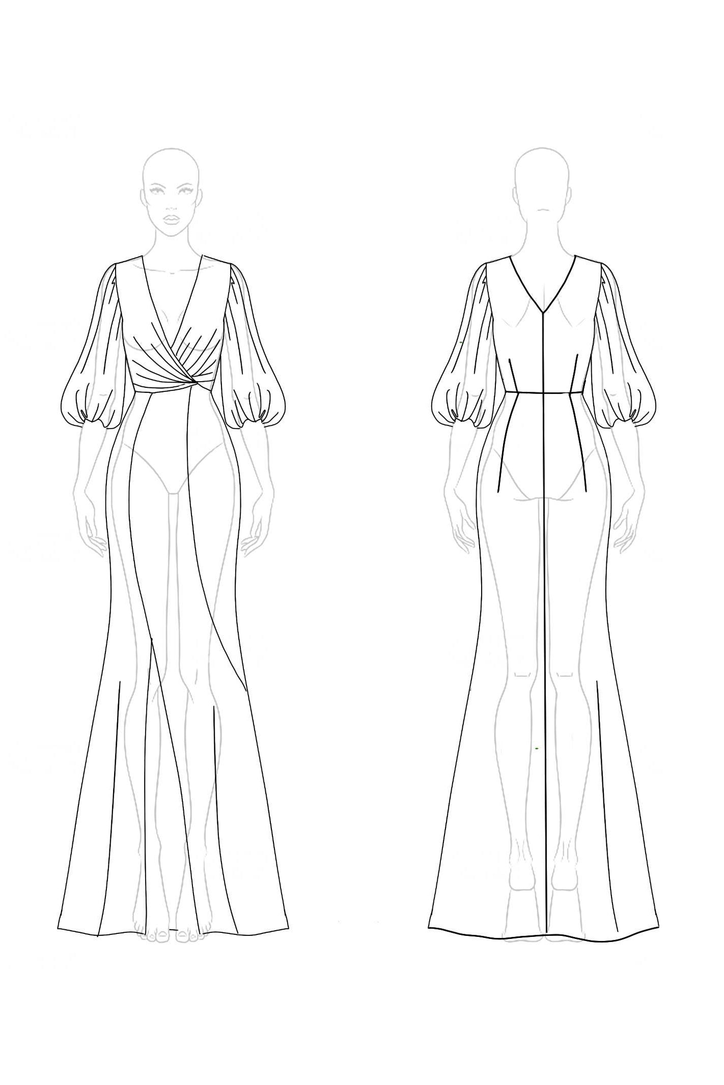 Design: Bubble Sleeve, Side slit, flowing silhouette