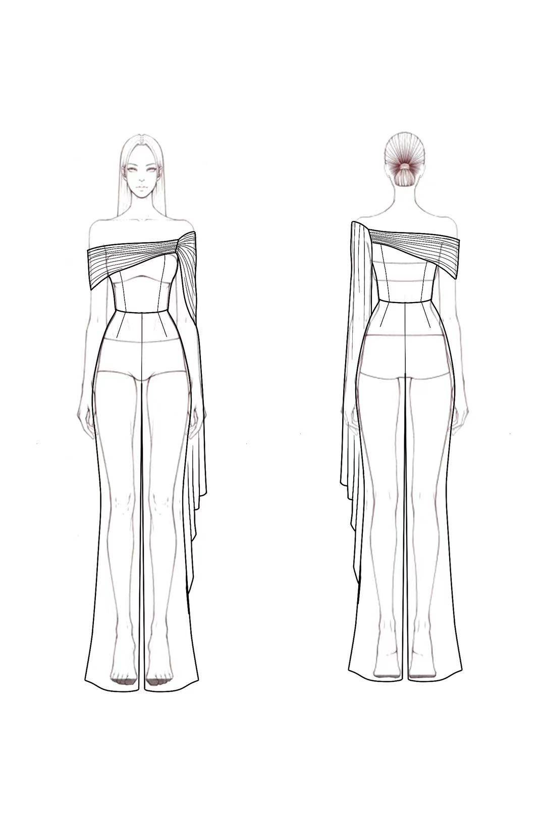 This elegant white jumpsuit redefines formal dressing with its draped off-shoulder neckline and sleek wide-leg pants. The structured yet fluid silhouette creates an effortlessly chic look perfect for evening galas, formal dinners, or modern weddings.