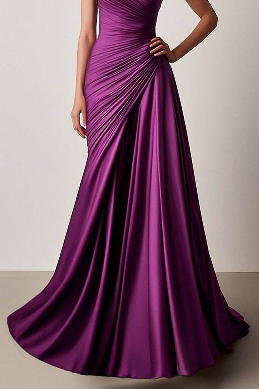 Formal Pleated Dress Purple Strapless Floor-Length Dress