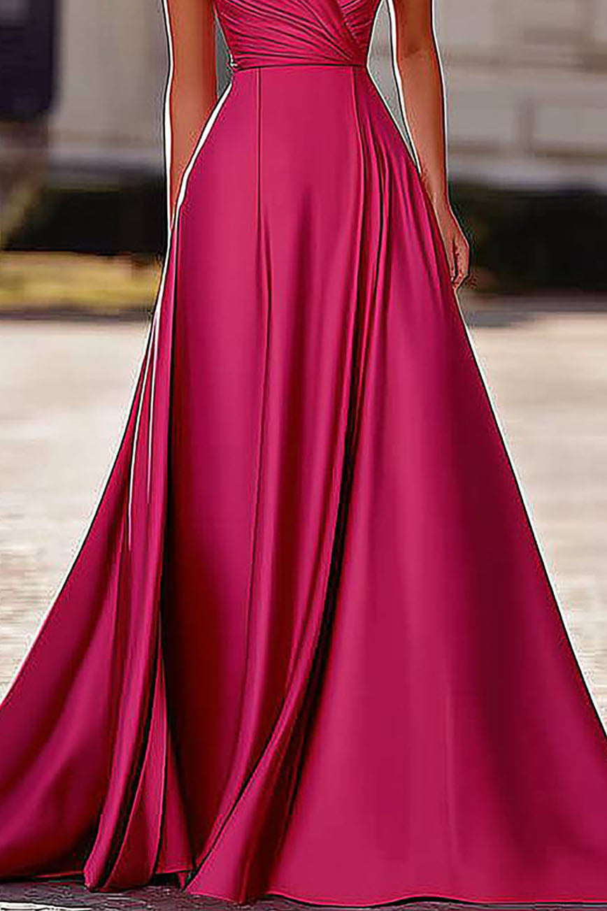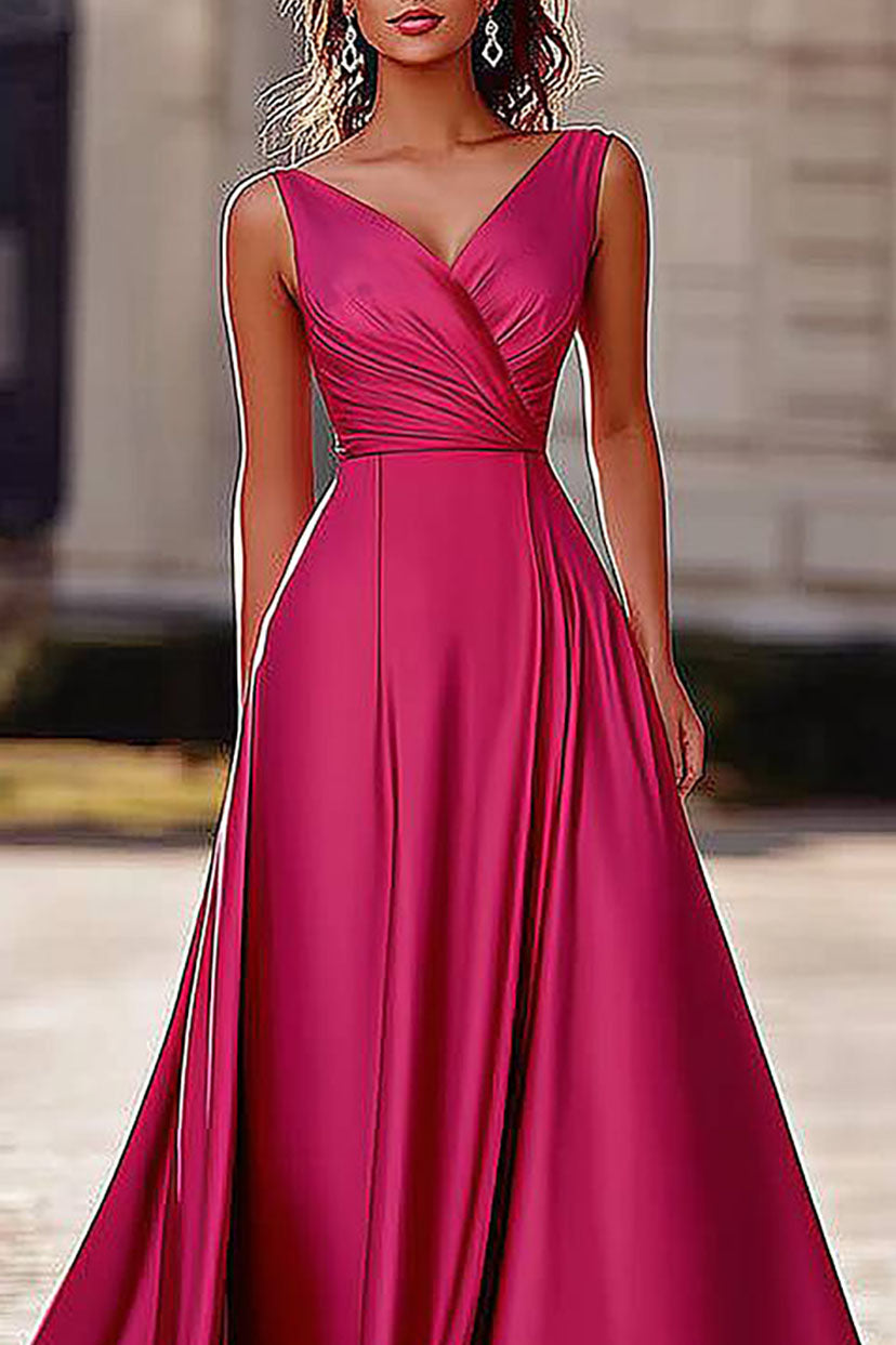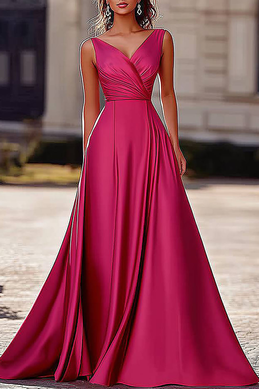 Formal Prom Evening Gown Satin Cross Neck Rose Sleeveless Maxi Dress