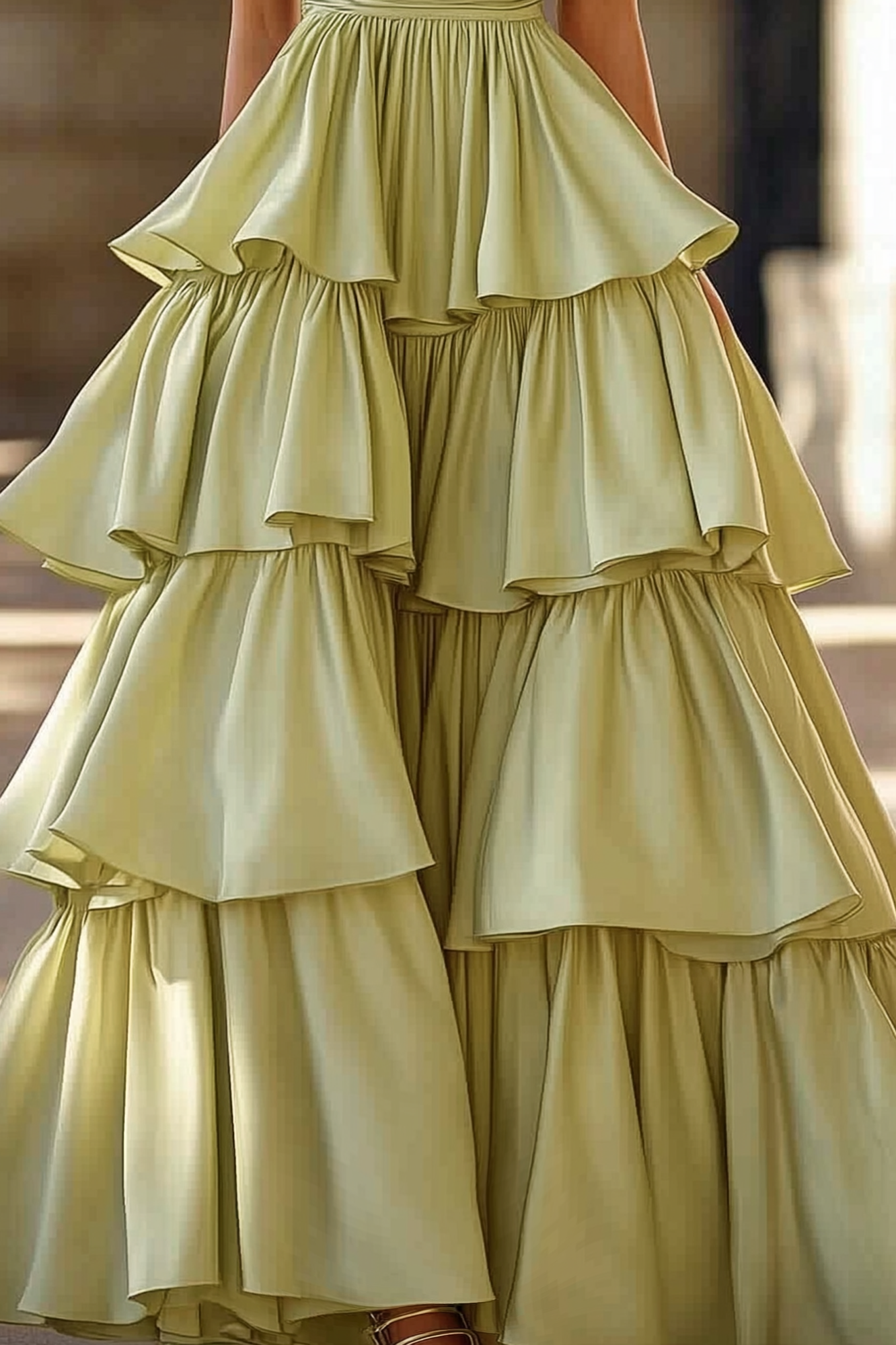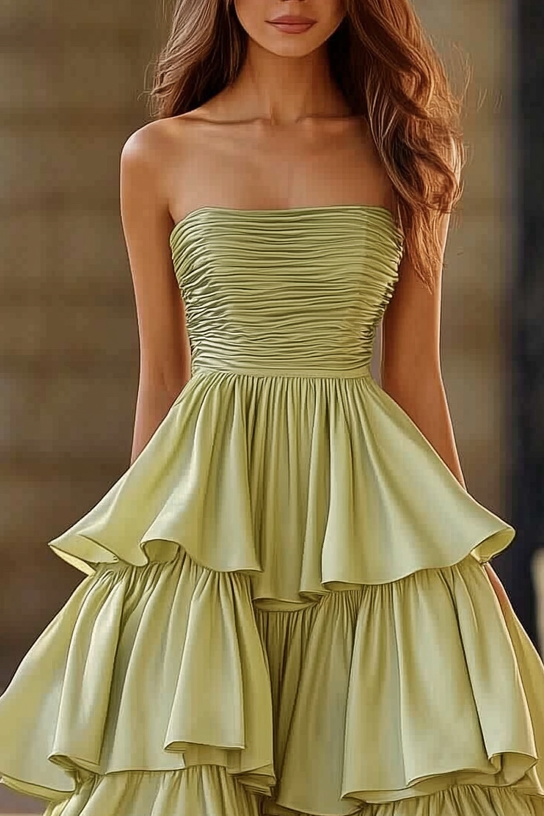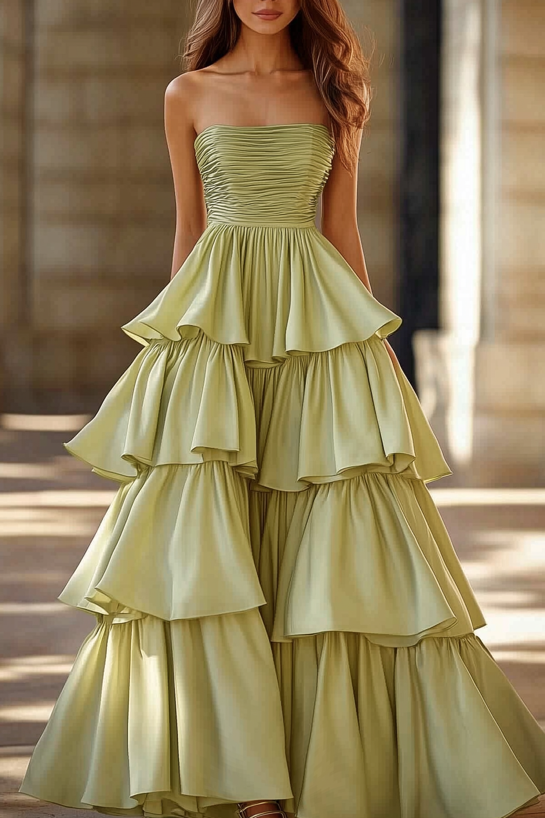 Formal Prom Tiered Dress Light Green Strapless Floor Dress