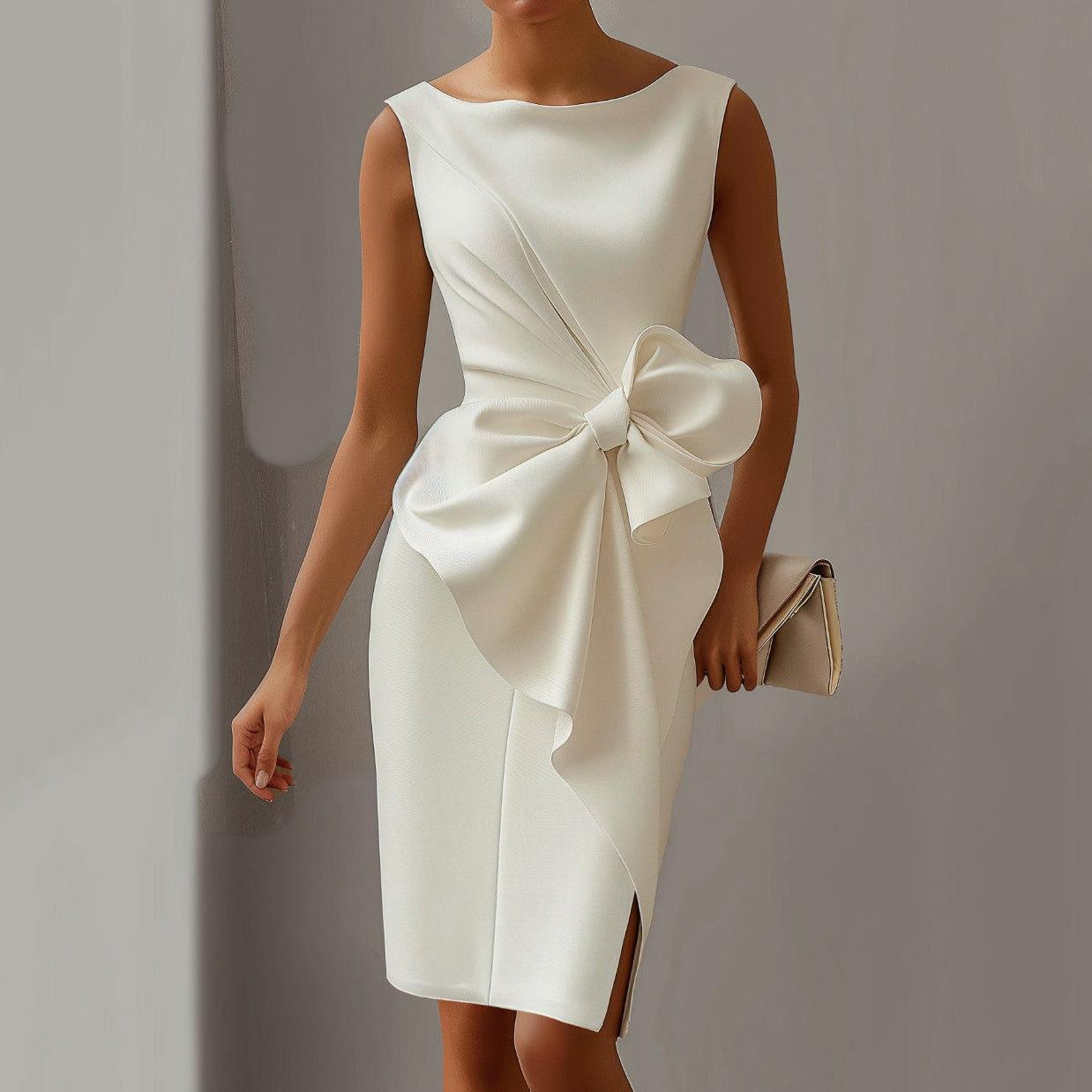 Formal Round Neck Sleeveless Bow Decor Slit Midi Dress