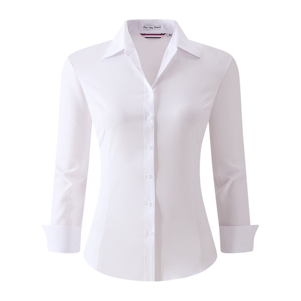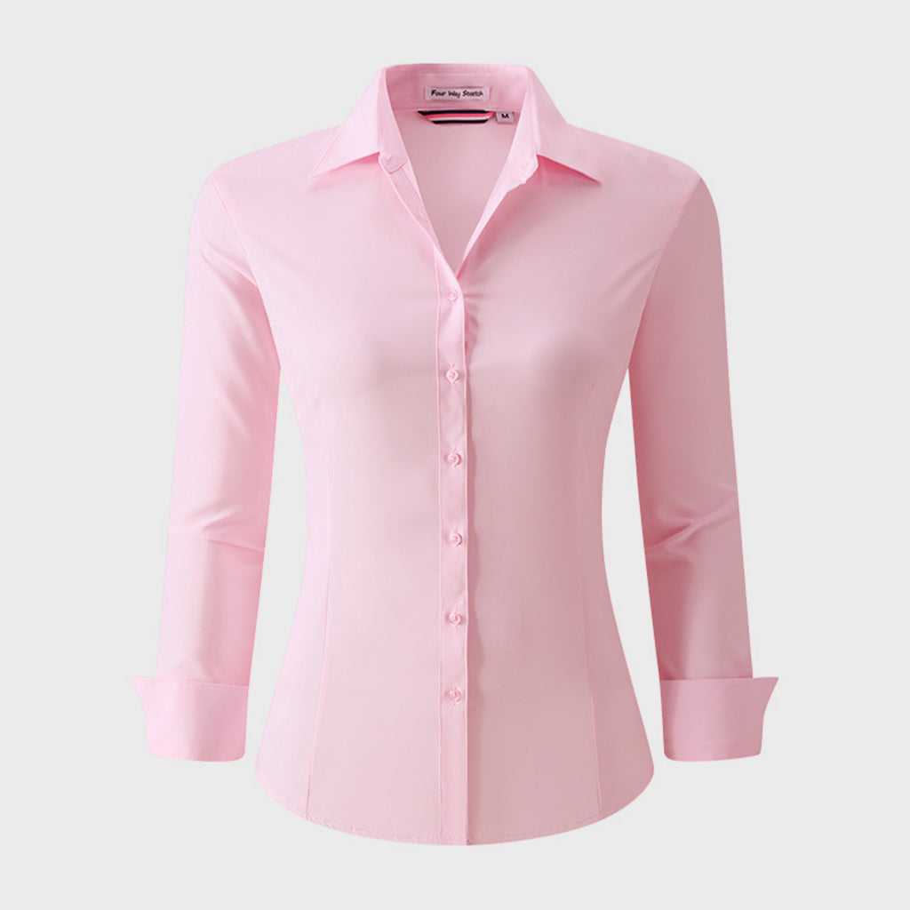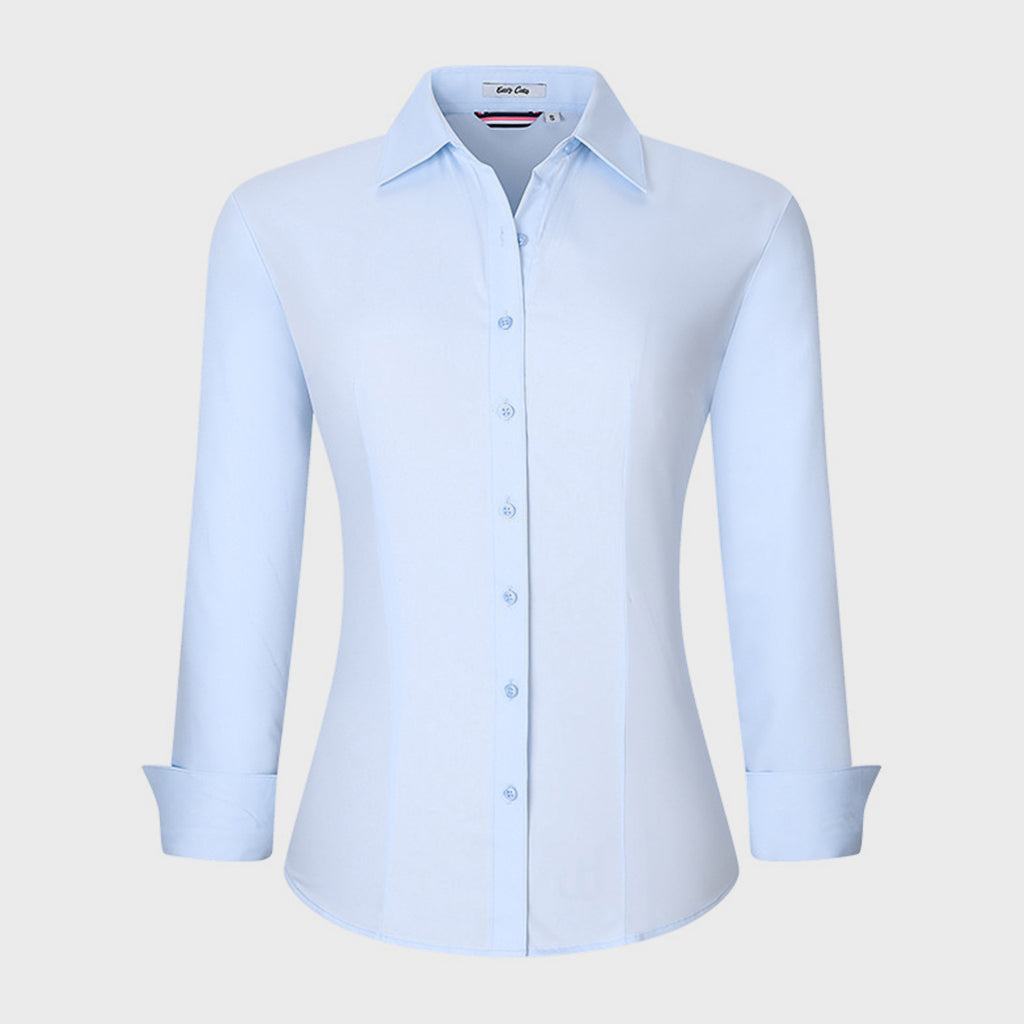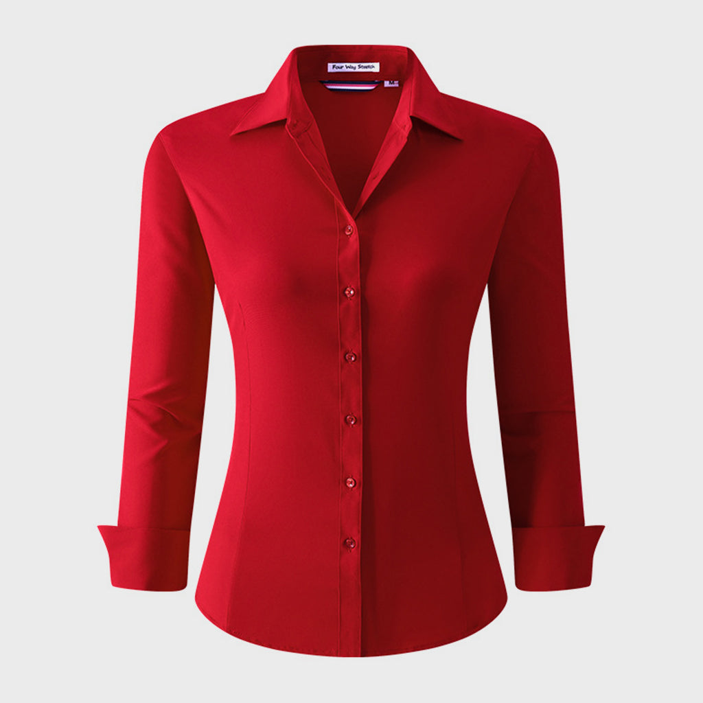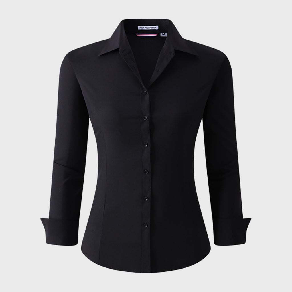 Formal Solid Turndown Collar Long Sleeve Button Up Blouse