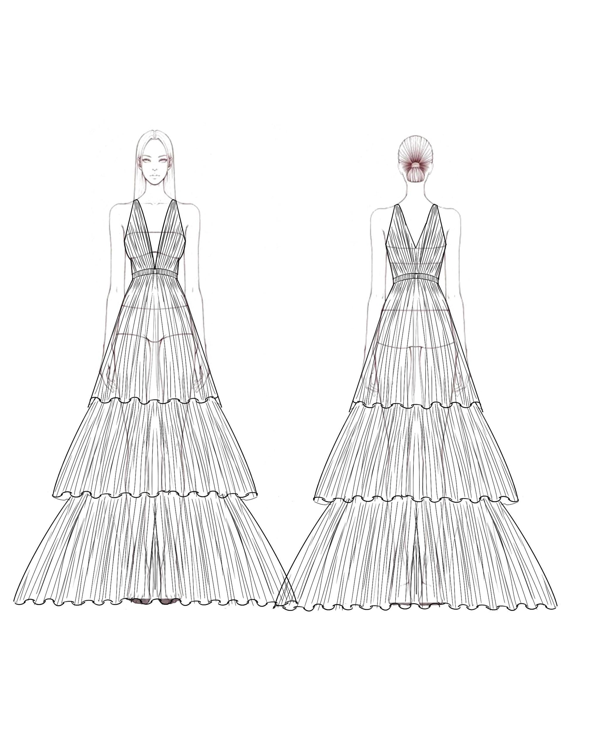 Design: Tiered, Pleated, Sleeveless
