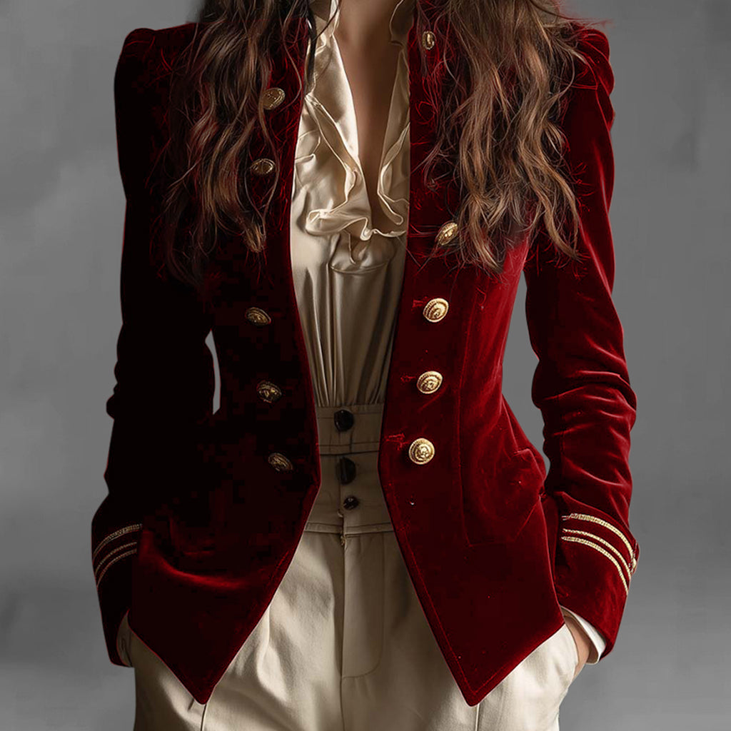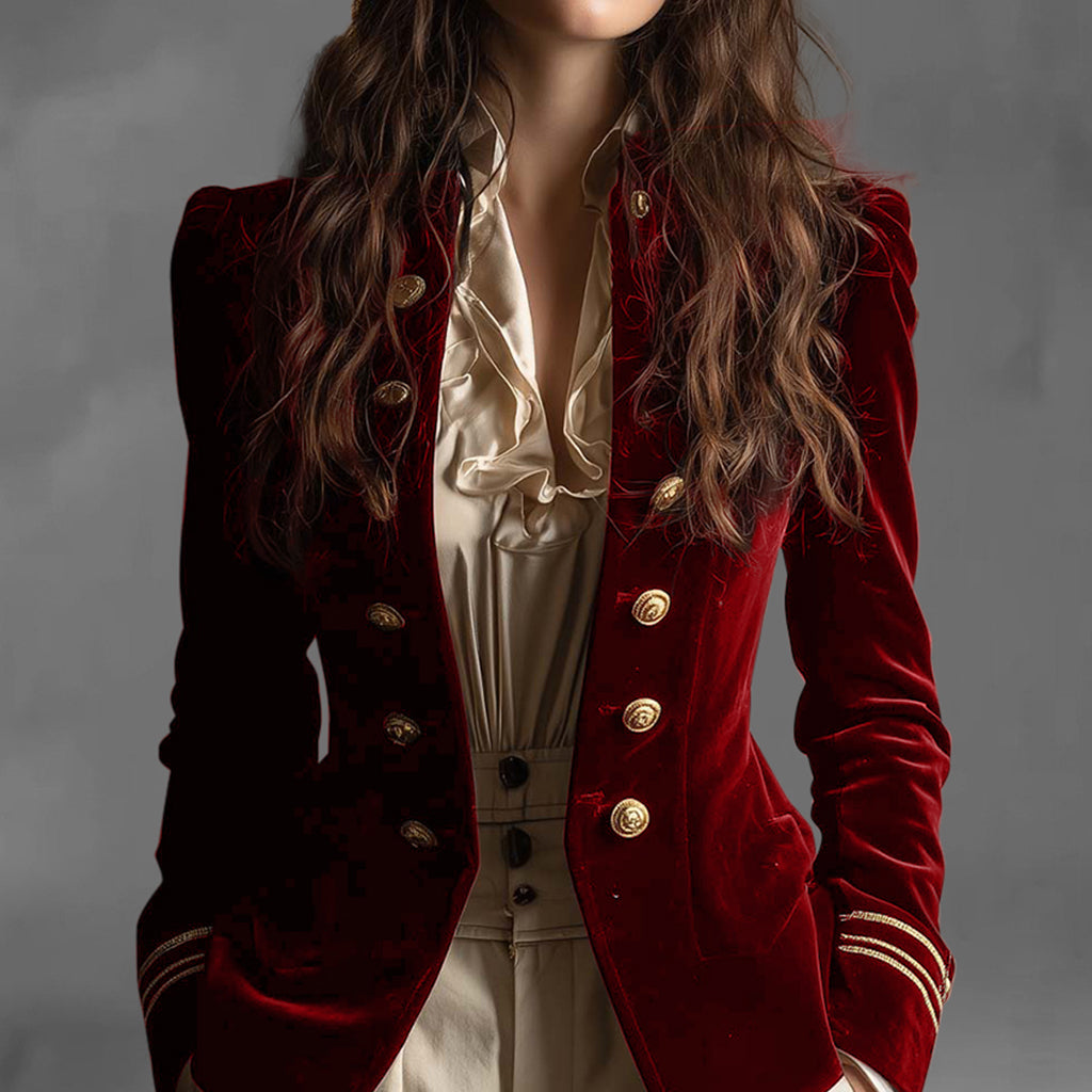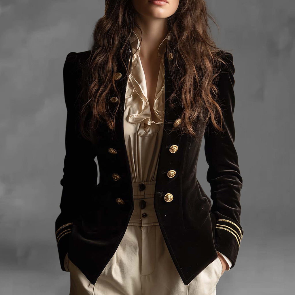 Formal Velvet Double Breasted Long Sleeve Striped Cuffs Jacket