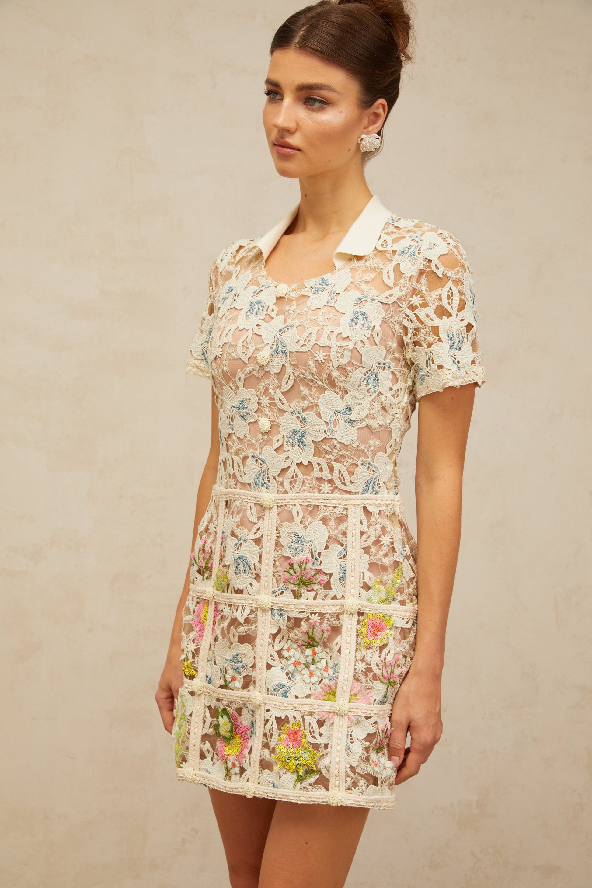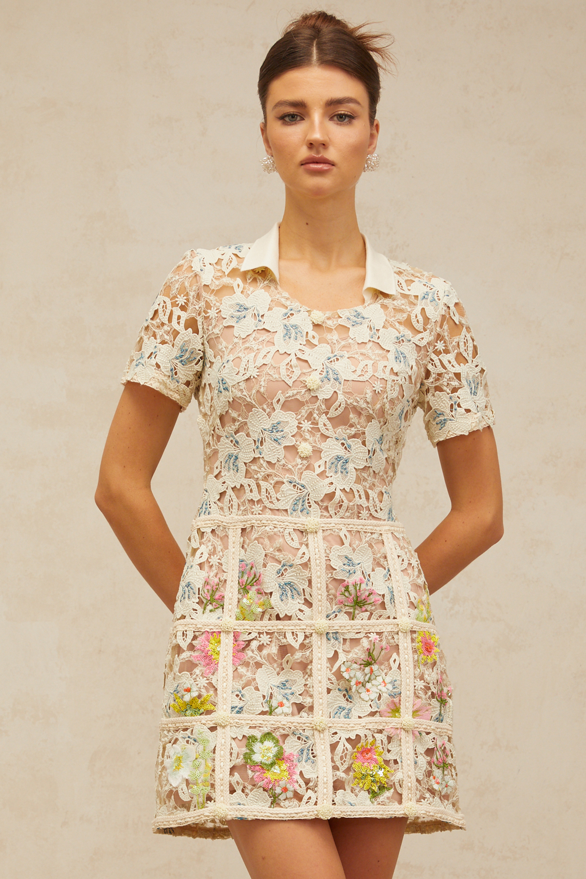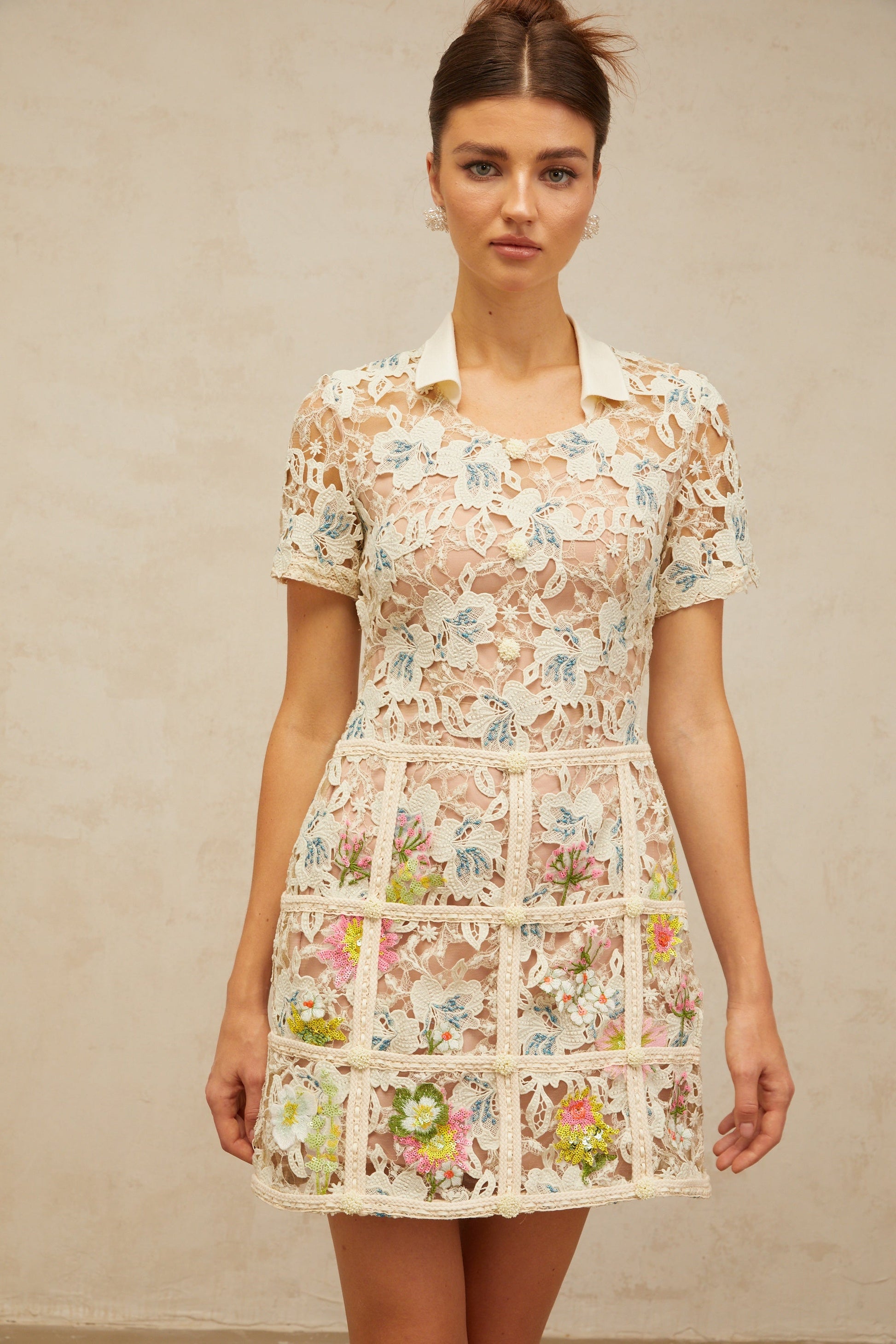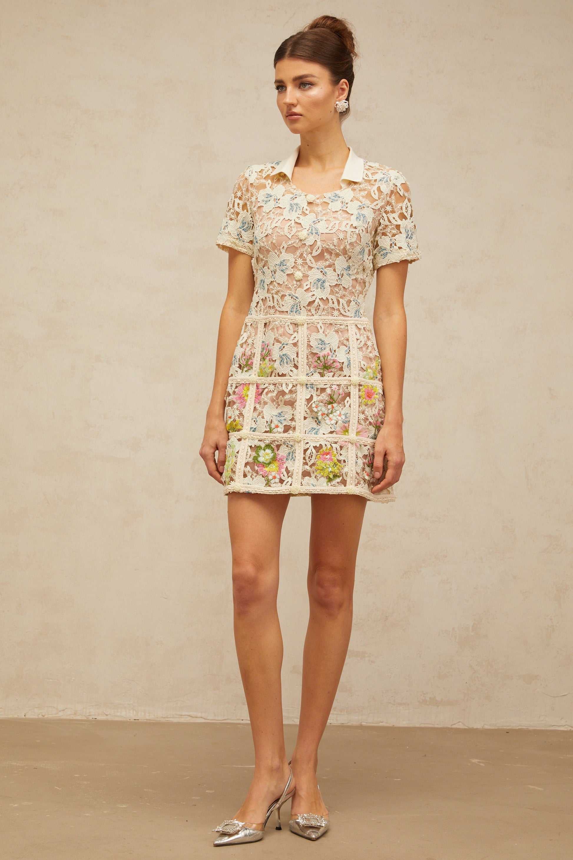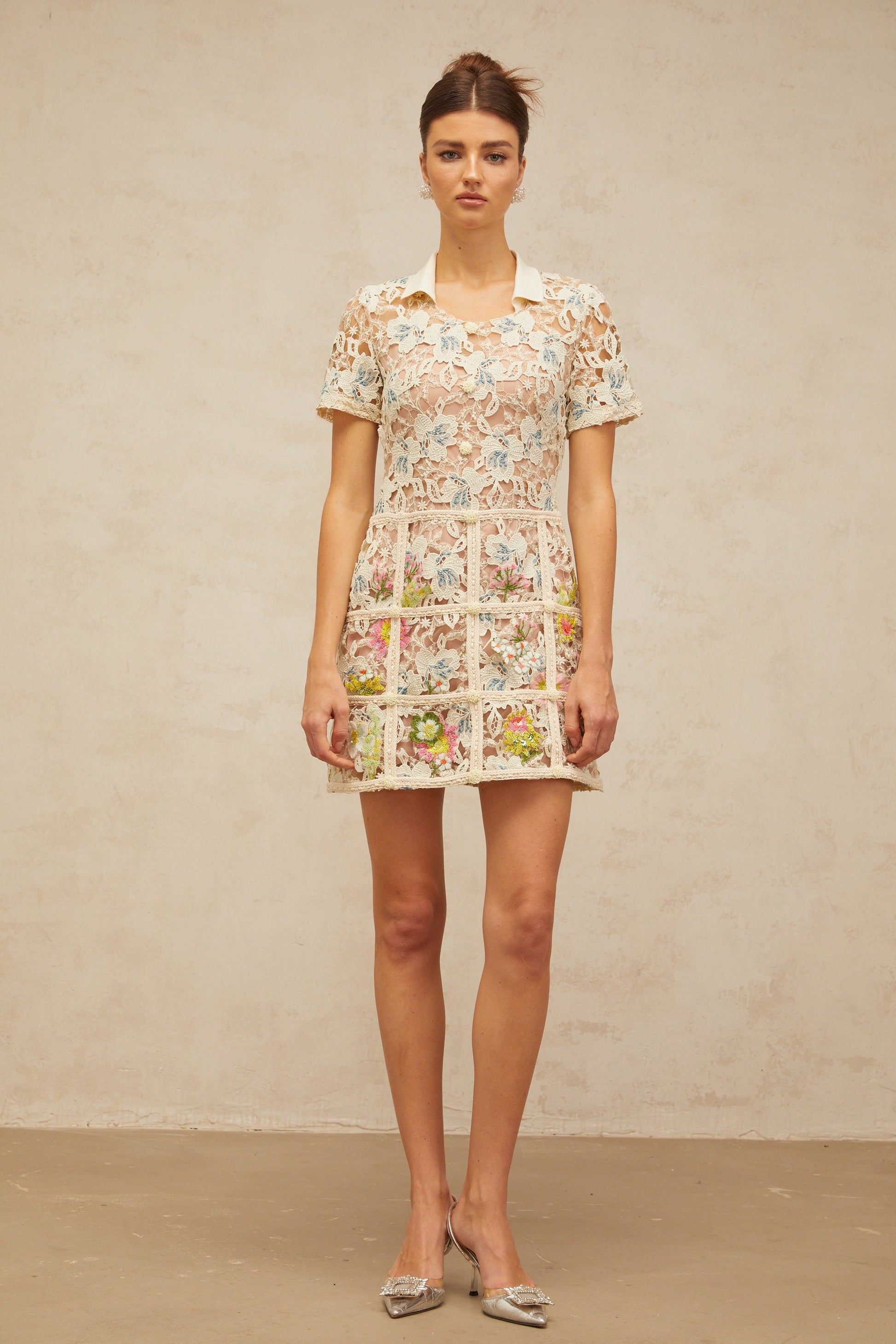 Françoise flower-embroidered mini dress