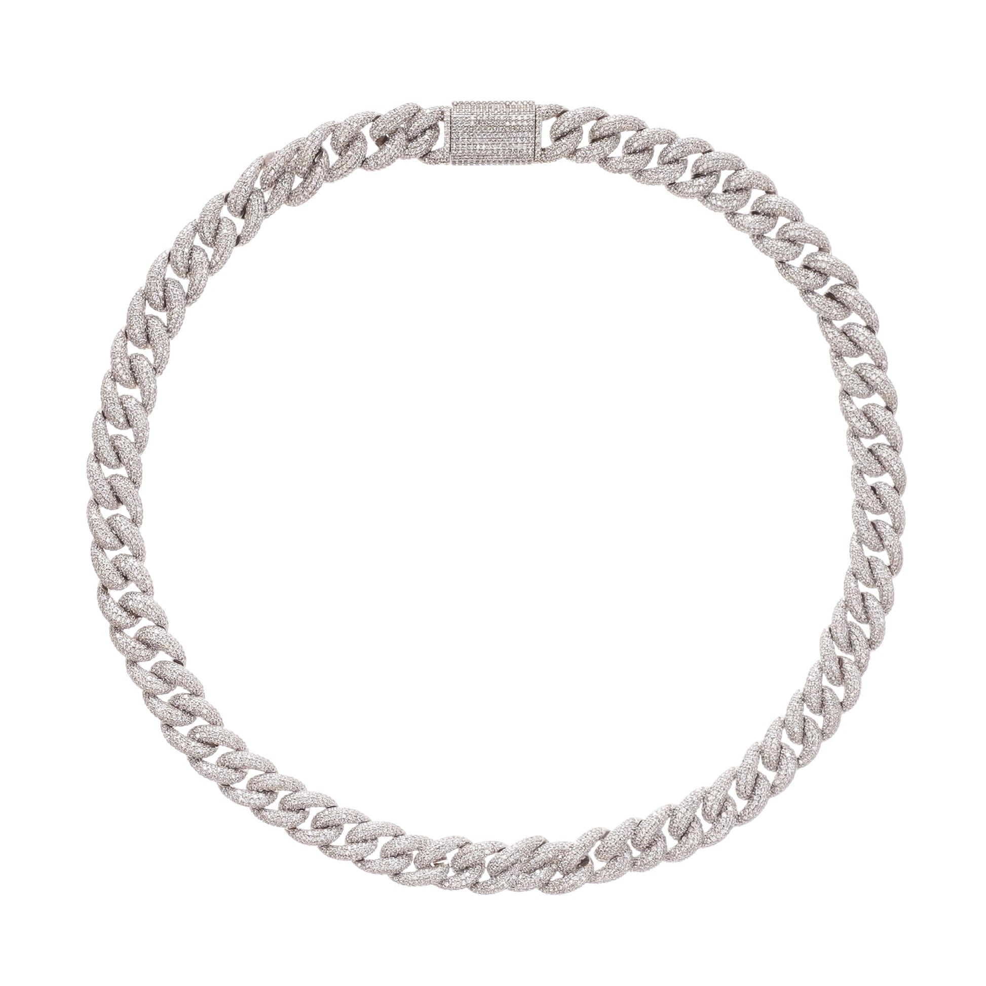 Frida Silver Tone Cuban Link Crystal Embellished Necklace