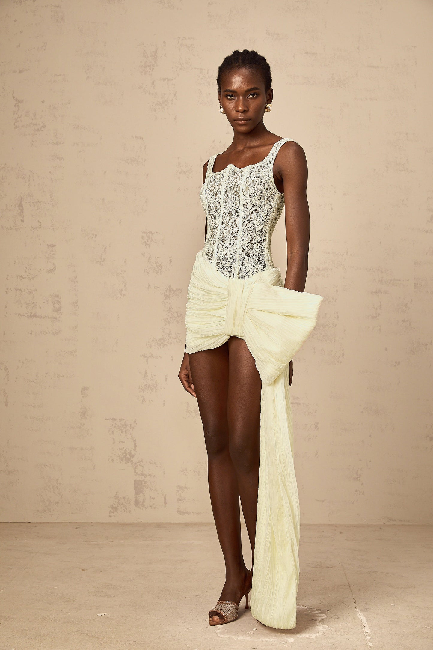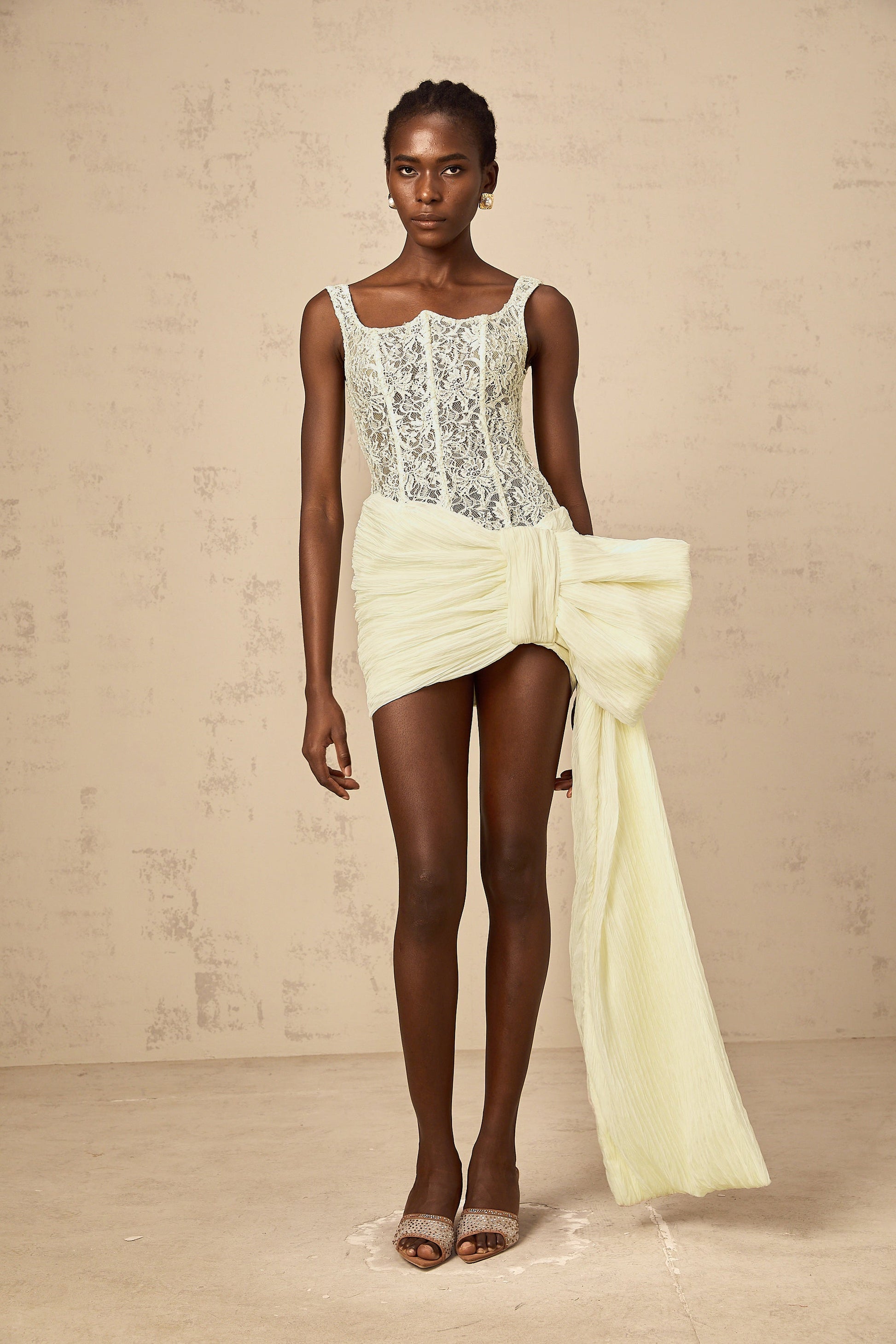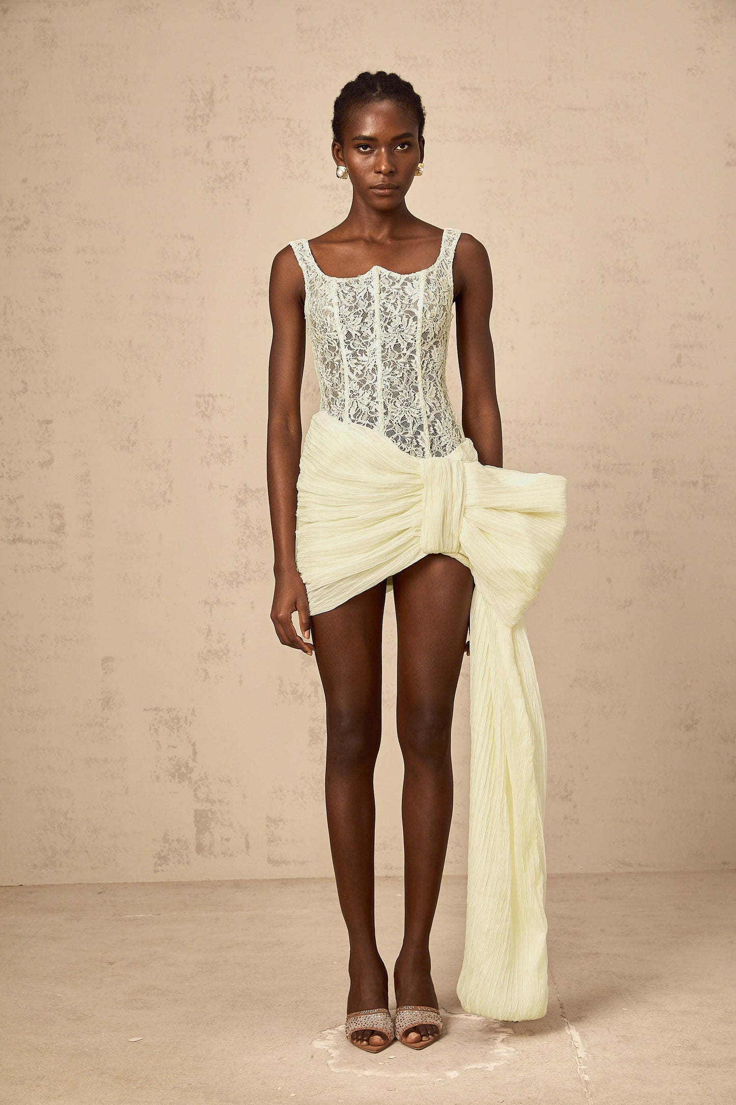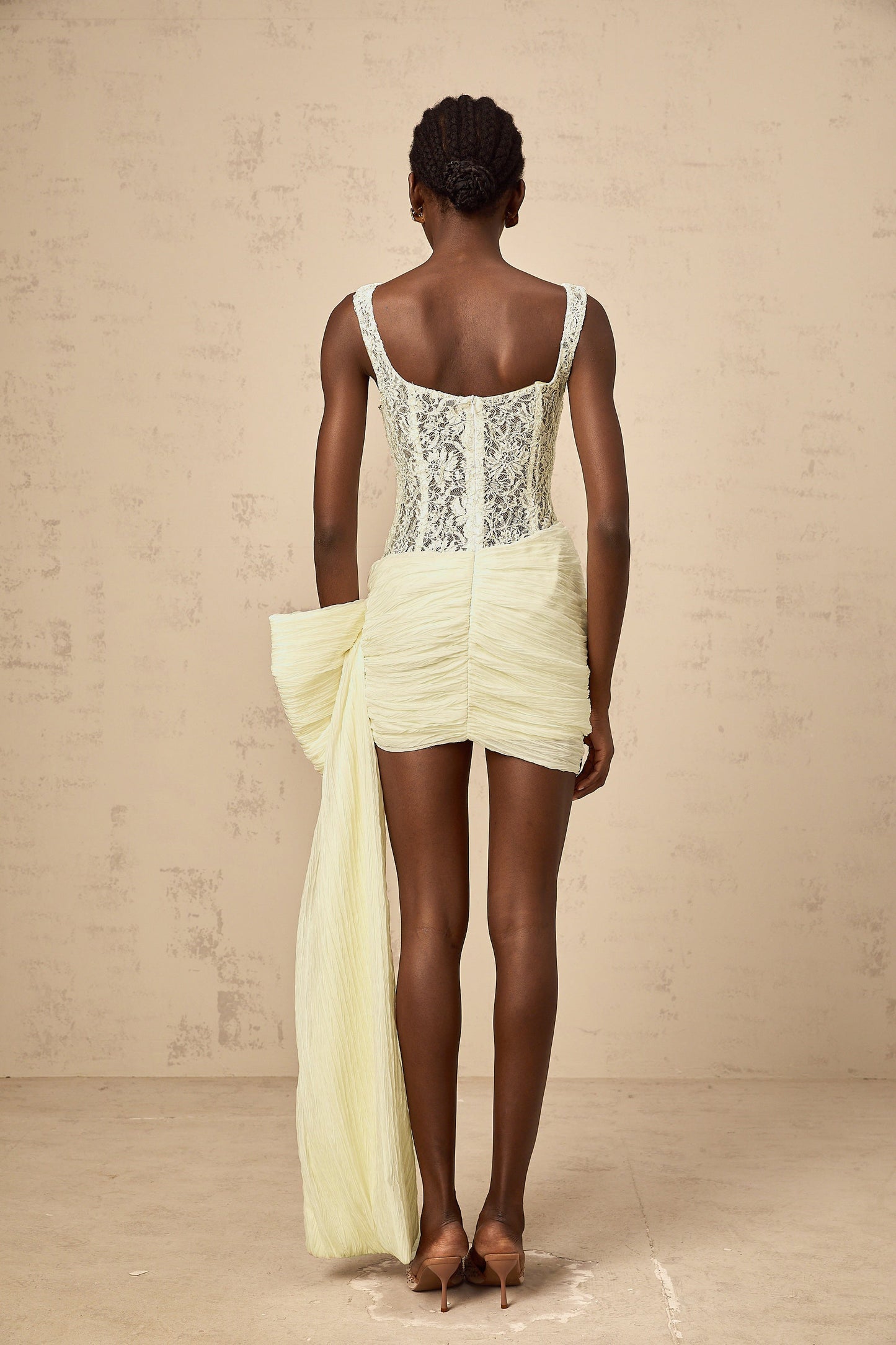 Gabrielle neutrals bowknot floral-lace-penal mini dress