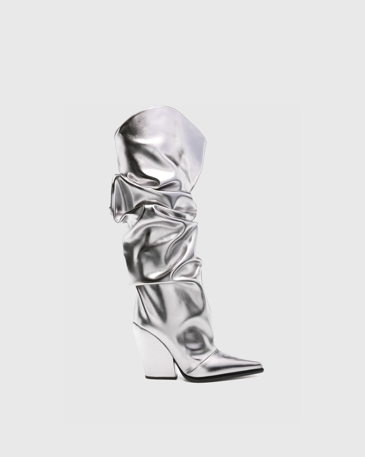Gaia Ruched Metallic Knee High Boots In Silver