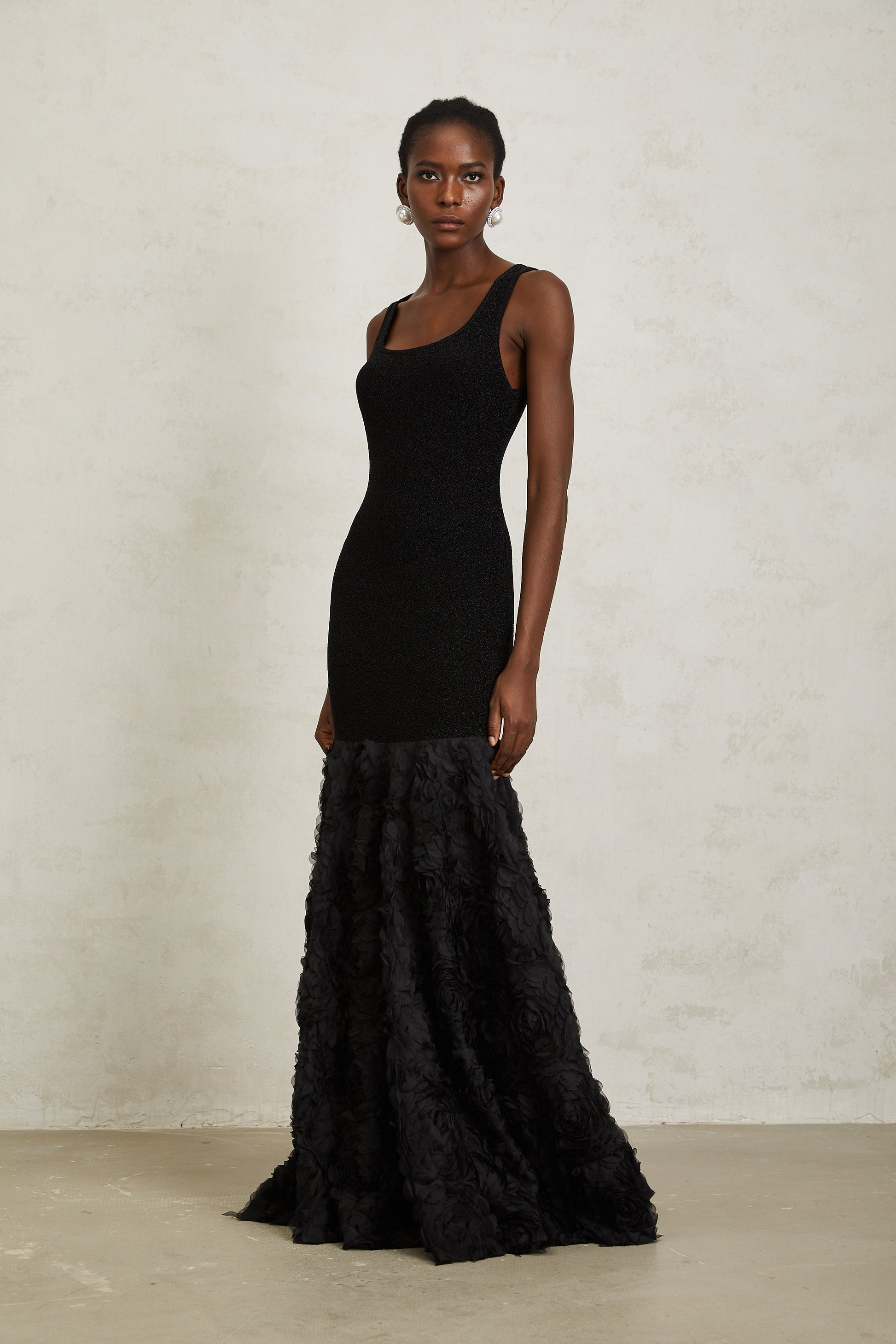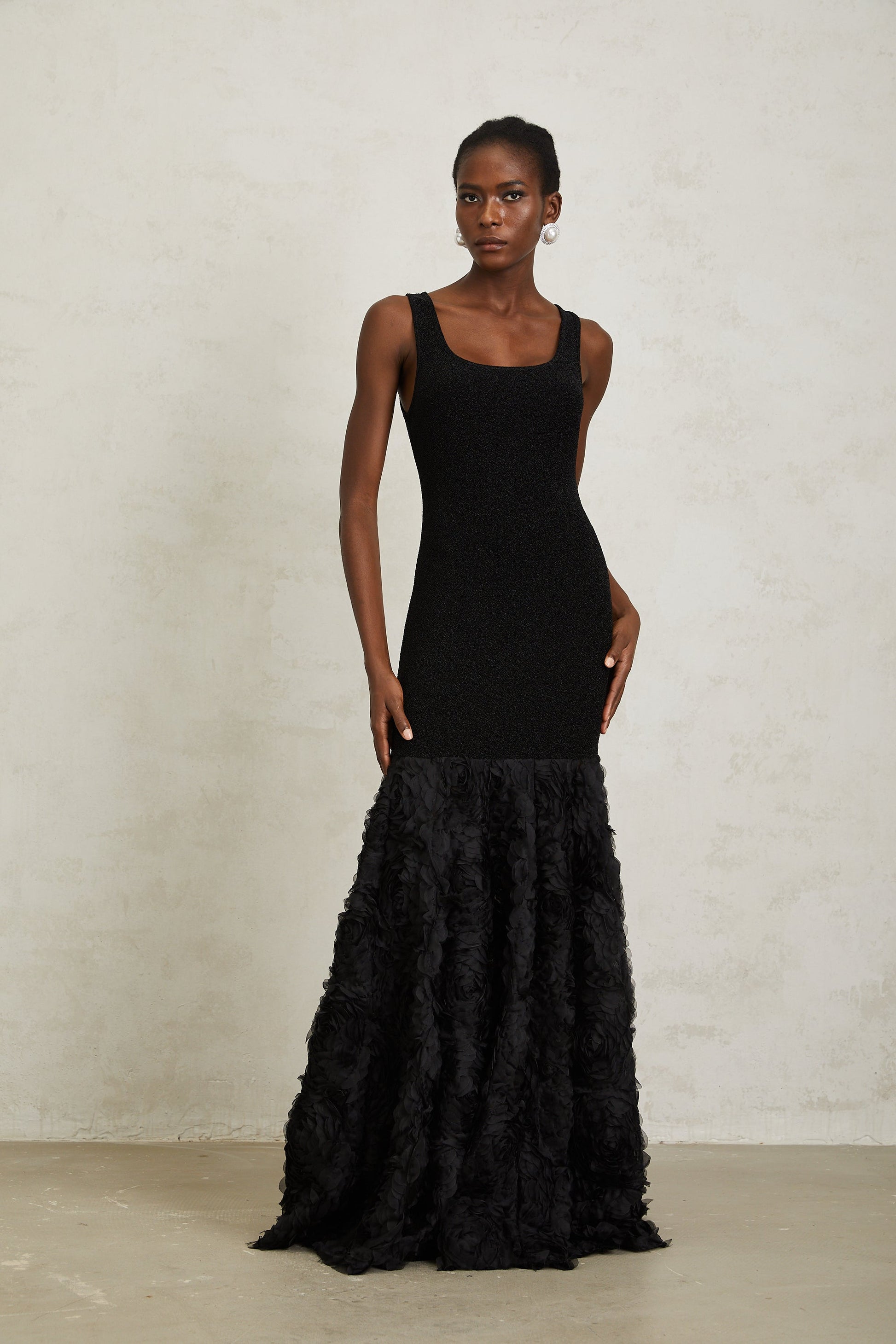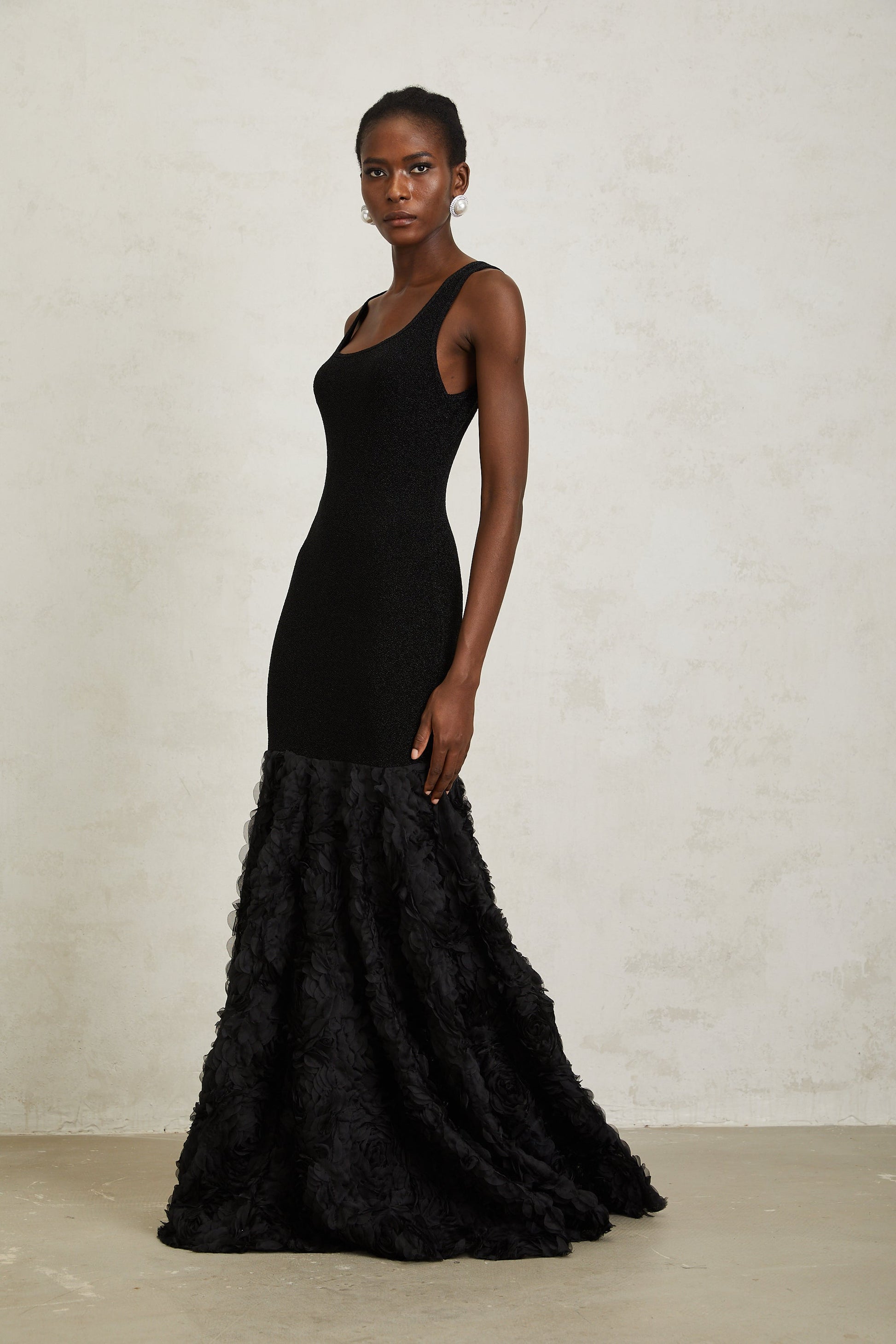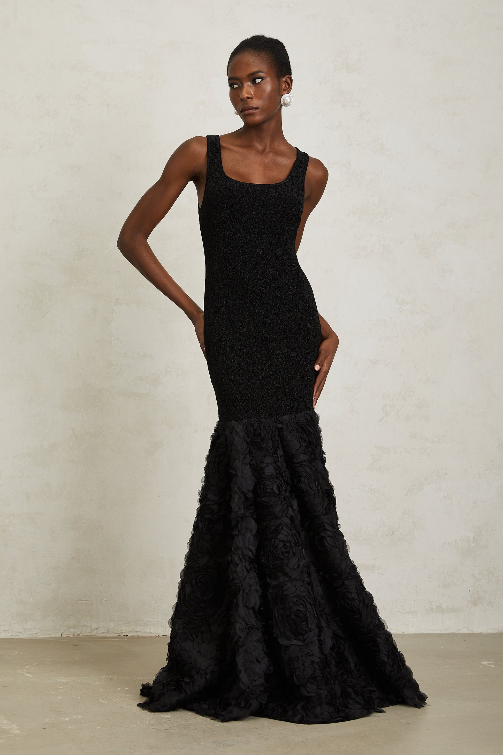 Gemma Black 3D Petal Panel Mermaid Maxi Dress