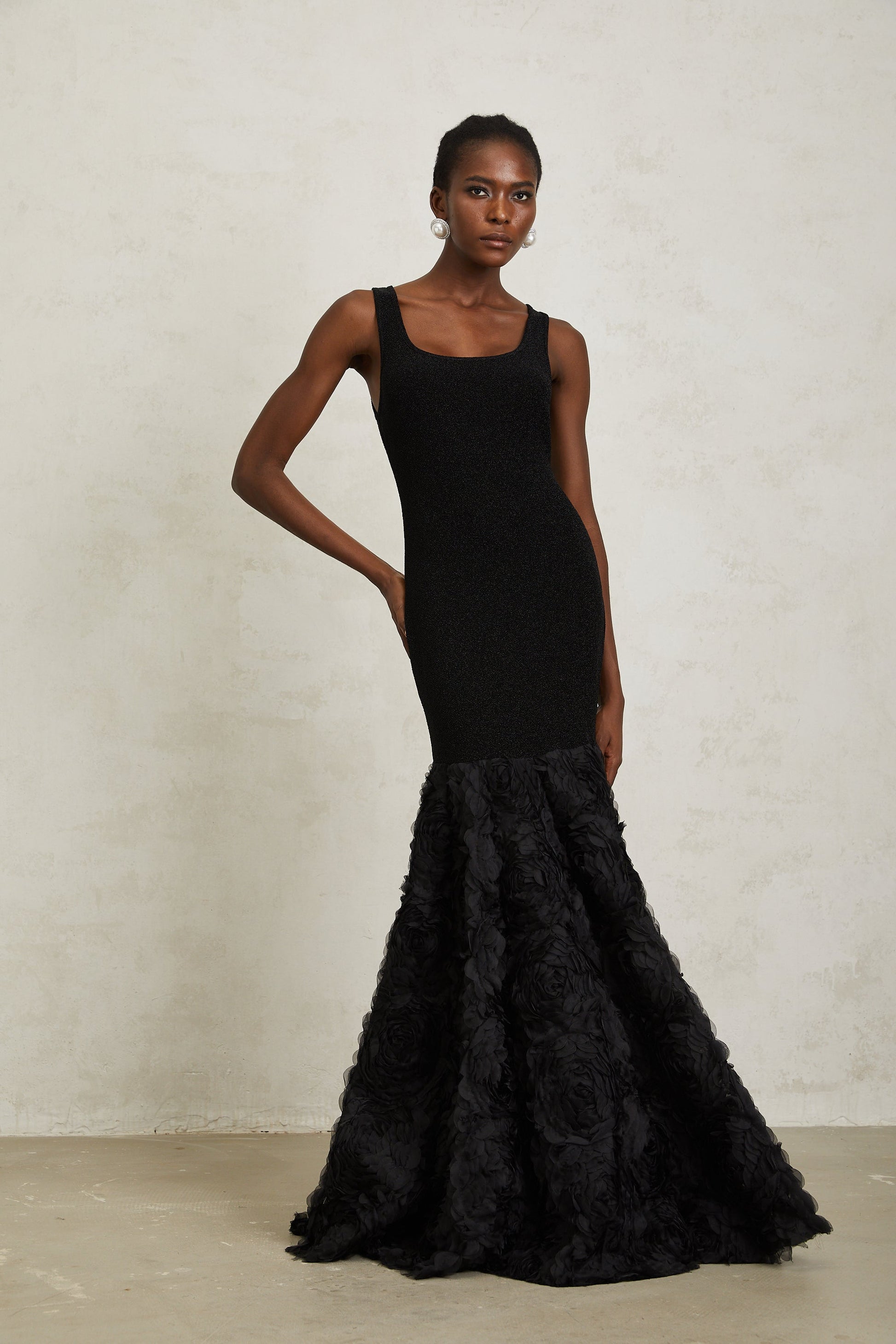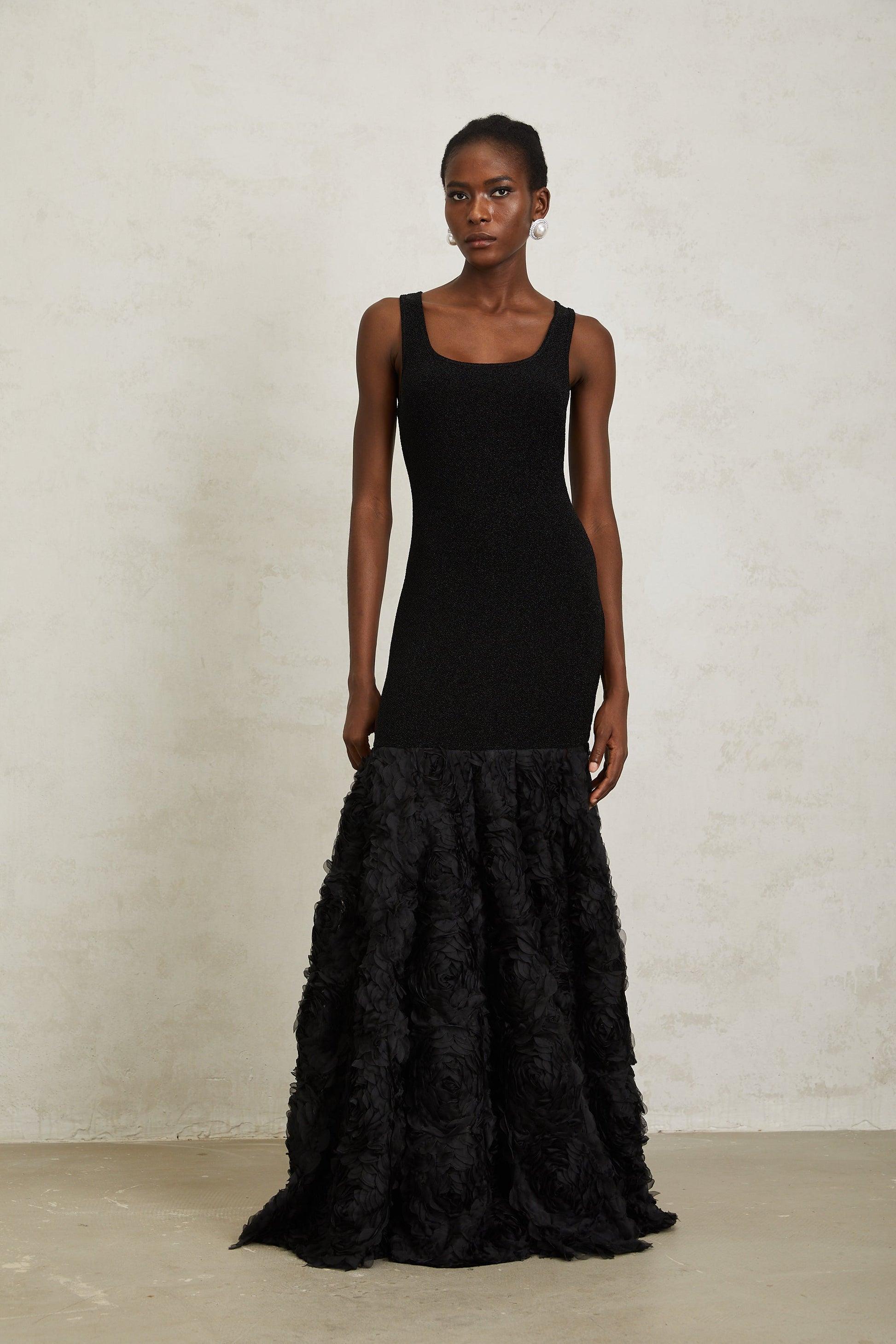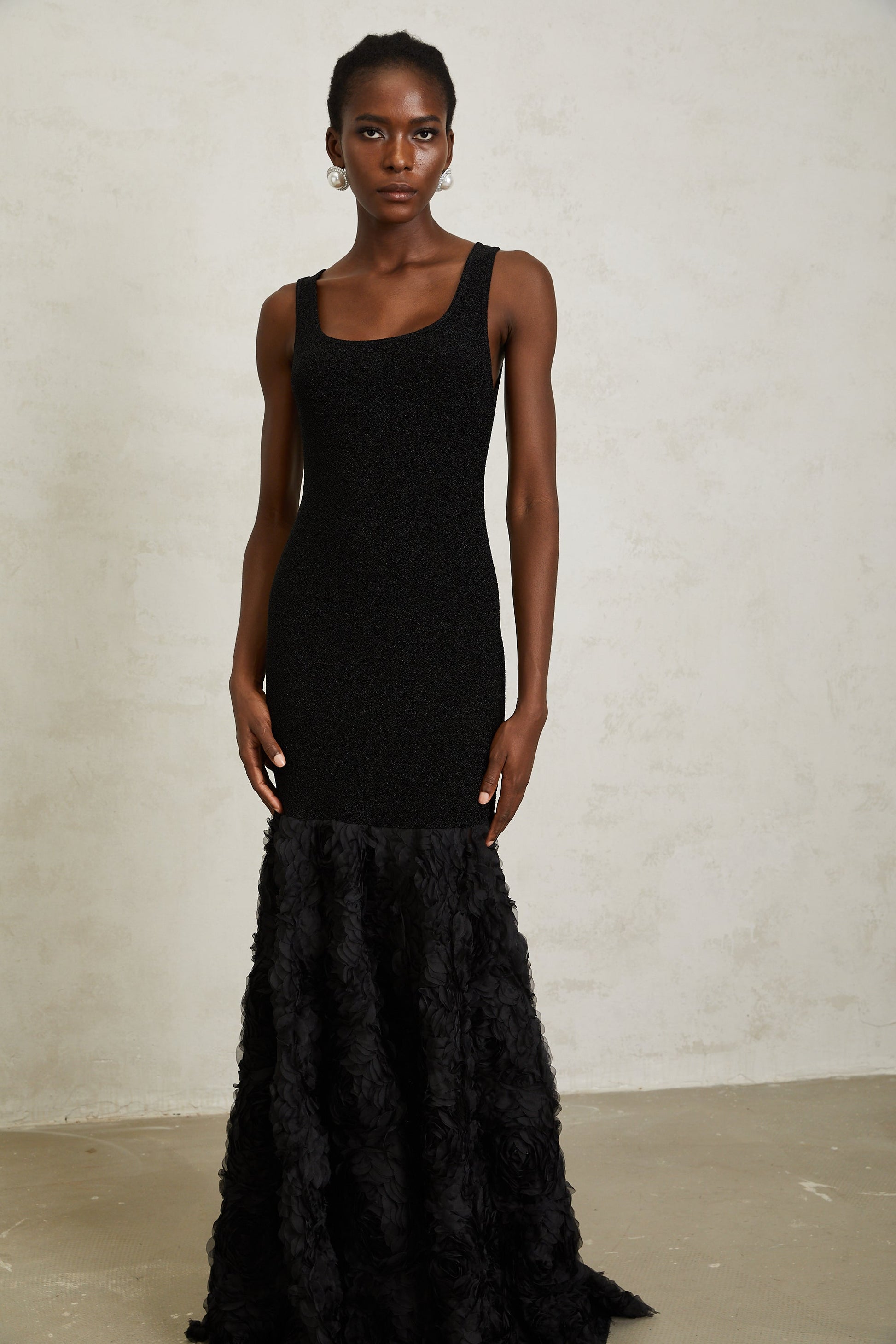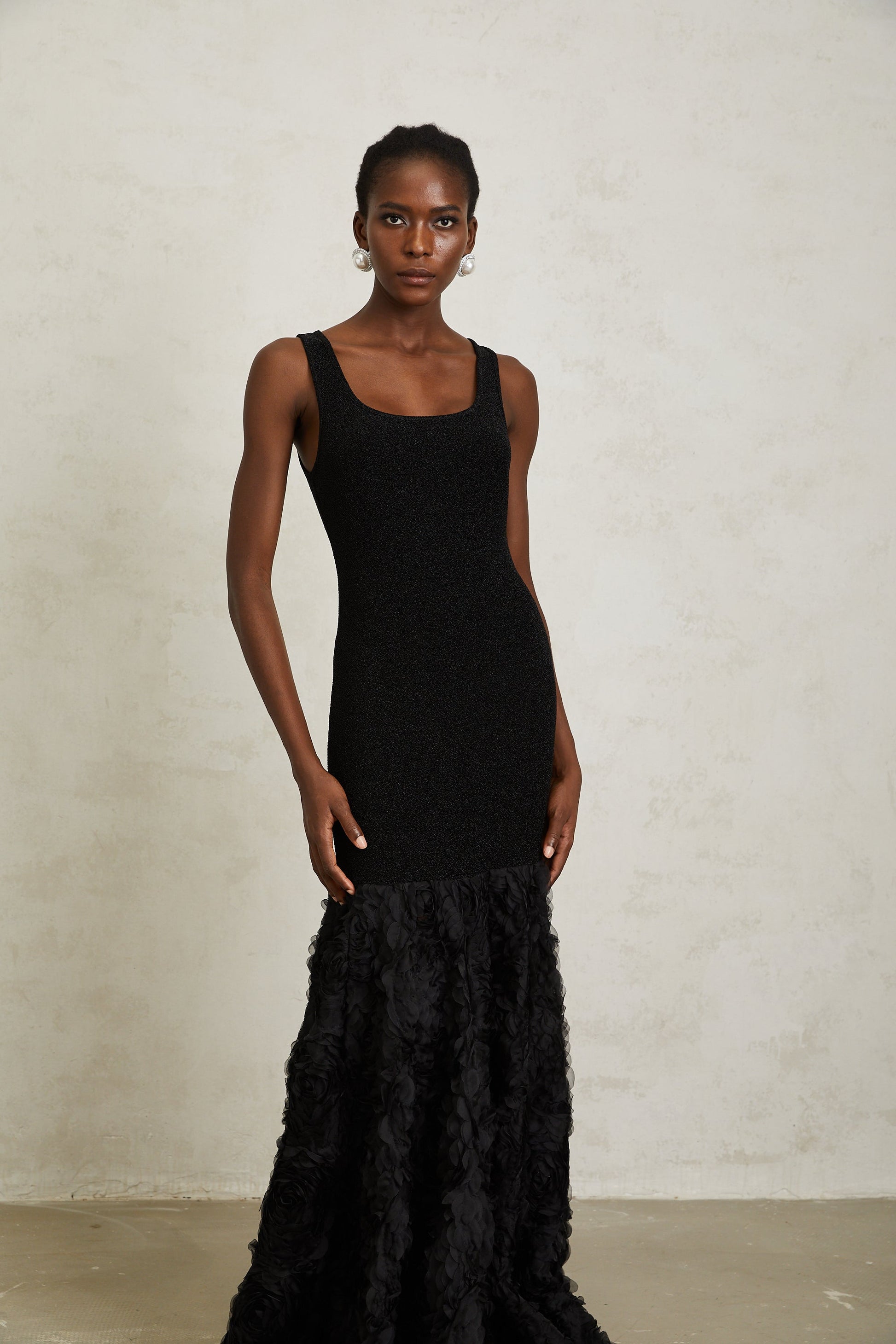 Gemma Black 3D Petal Panel Mermaid Maxi Dress