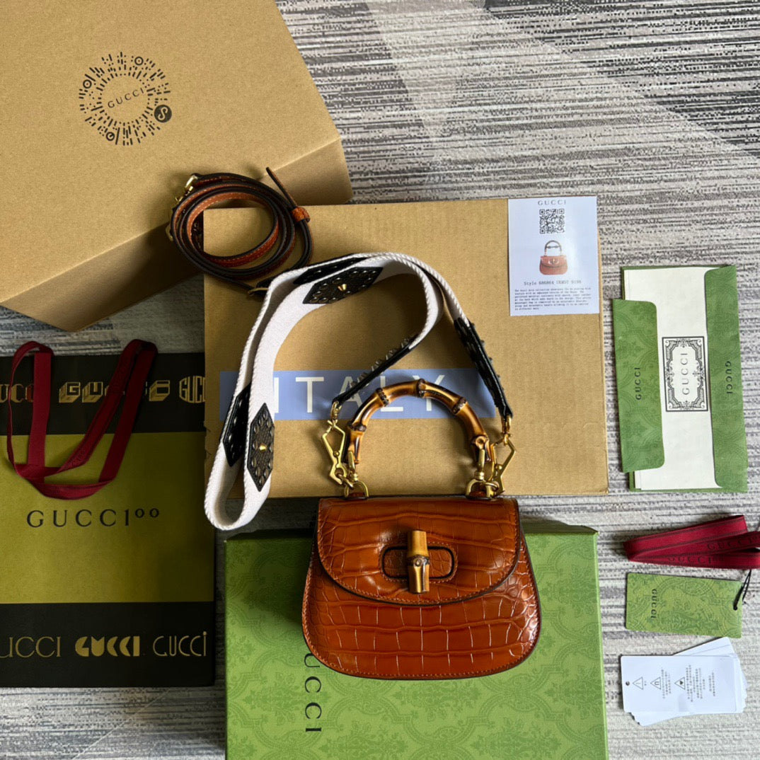 GG Bamboo 1947 Crocodile Mini Top Handle Bag Red For Women, Women’s Bags 6.7in/17cm GG