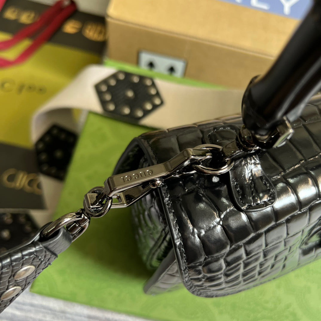 gg Bamboo 1947 Crocodile Top Handle Bag Black For Women, Women’s Bags 10.2in/26cm gg
