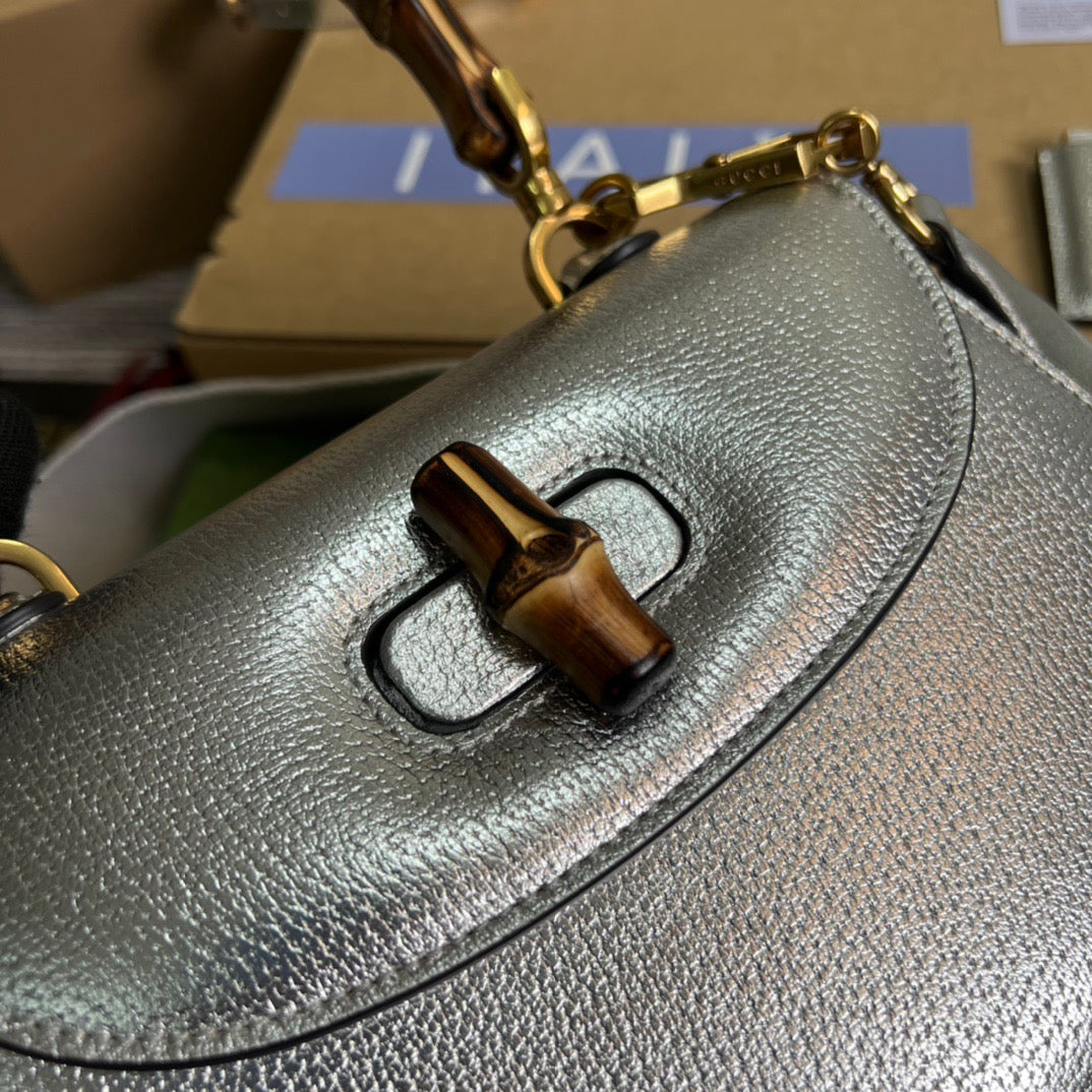 GG Bamboo 1947 Medium Top Handle Bag Silver For Women, Women’s Bags 10.2in/26cm GG
