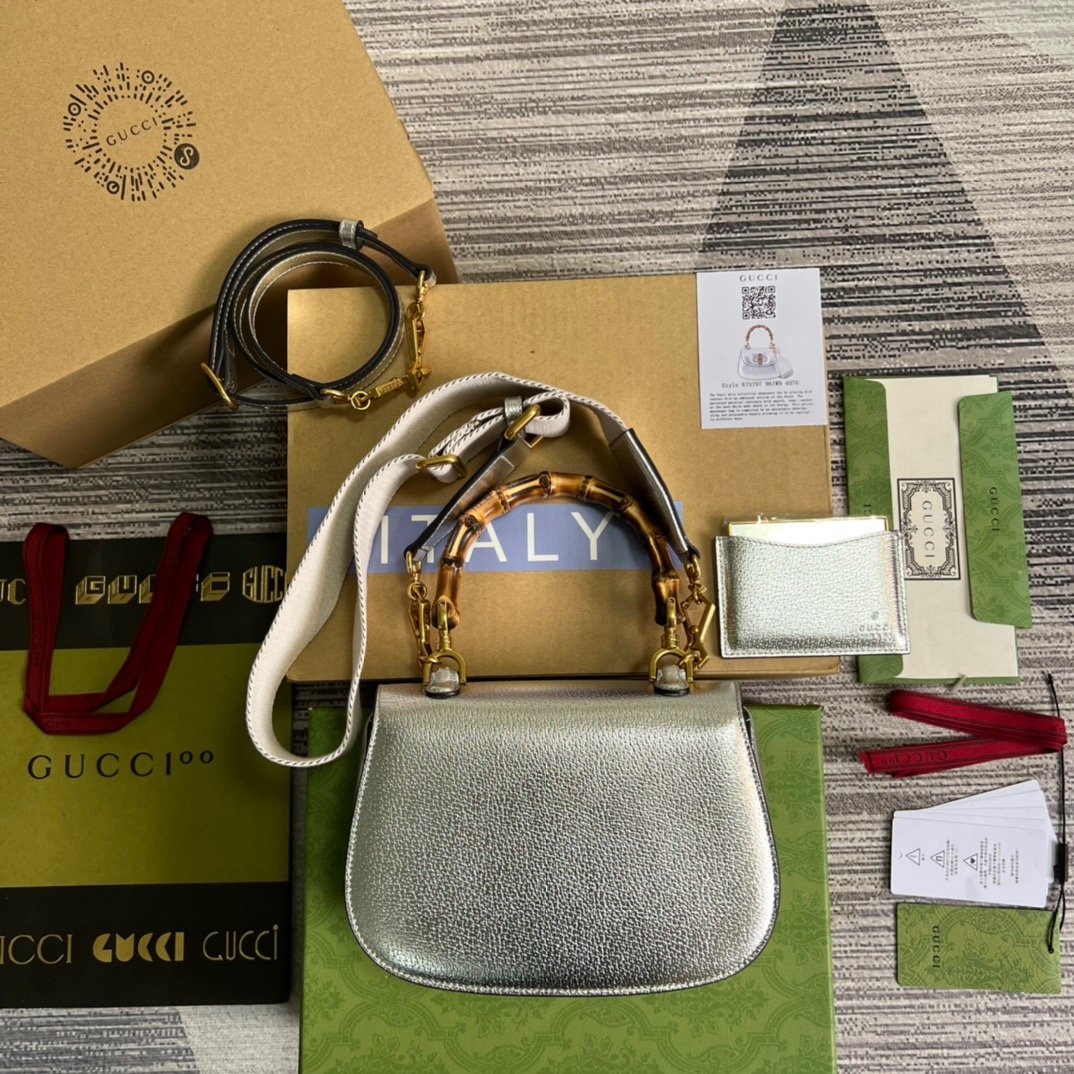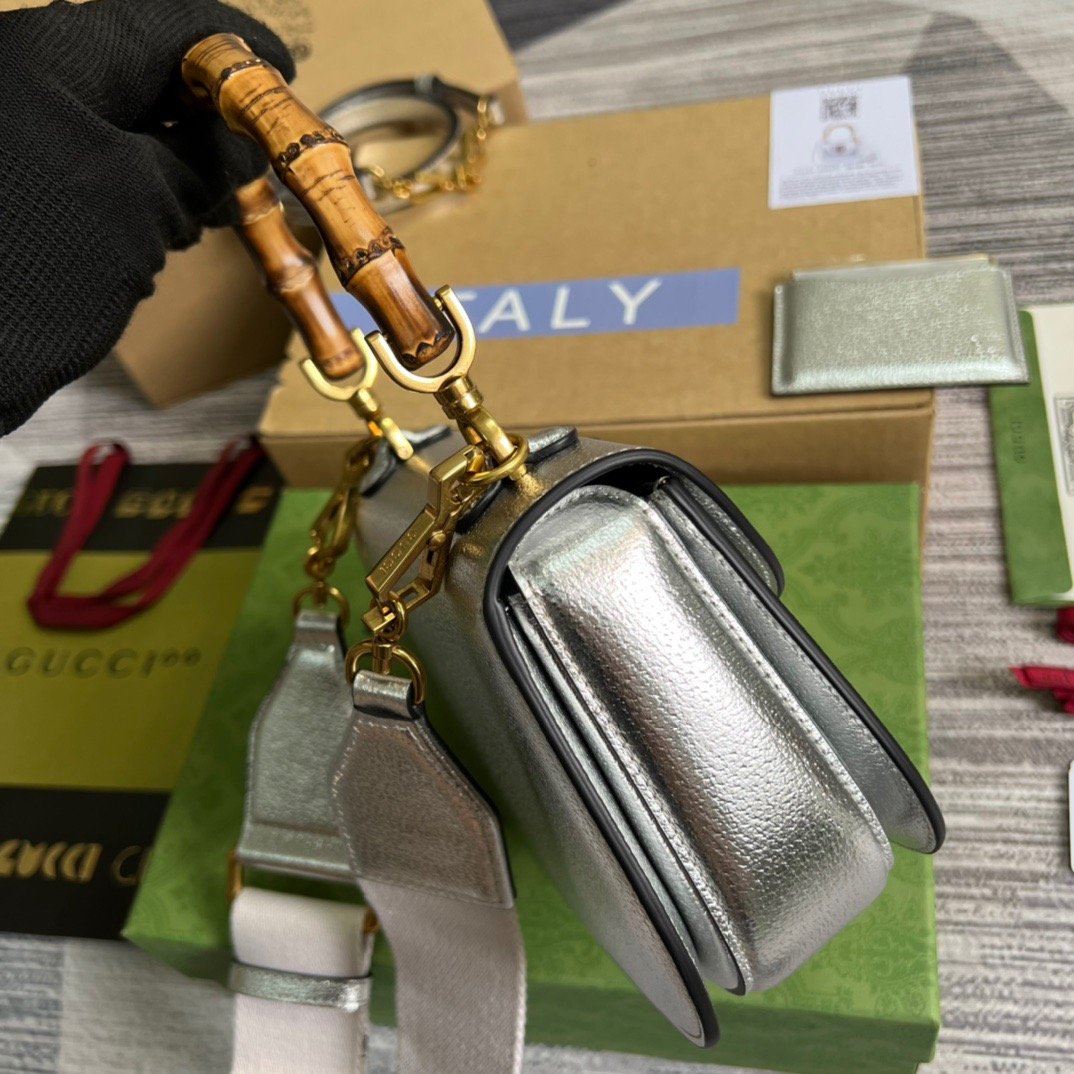 gg Bamboo 1947 Medium Top Handle Bag Silver For Women, Women’s Bags 10.2in/26cm gg