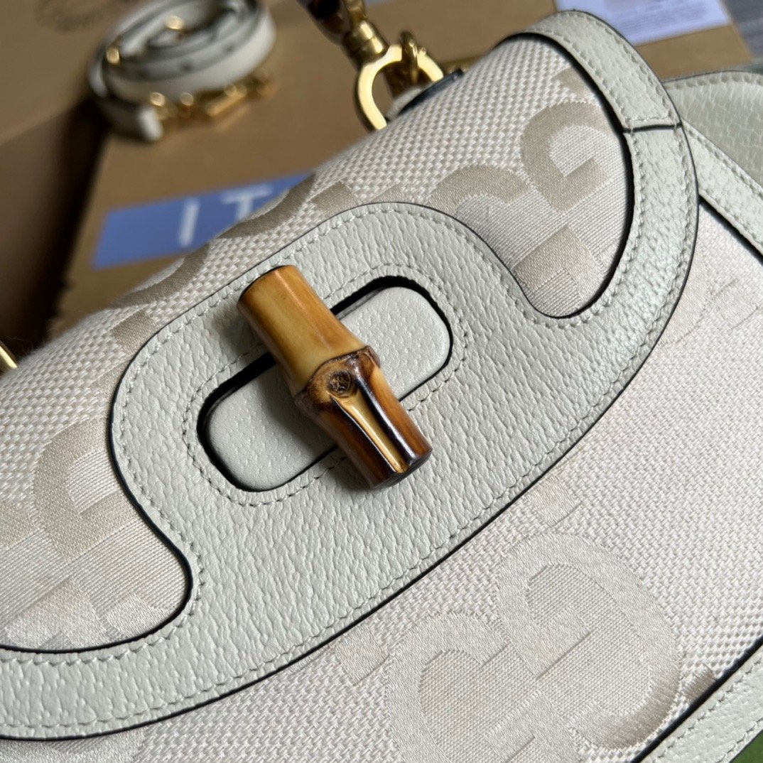 GG Bamboo 1947 Medium Top Handle Bag White For Women, Women’s Bags 10.2in/26cm GG