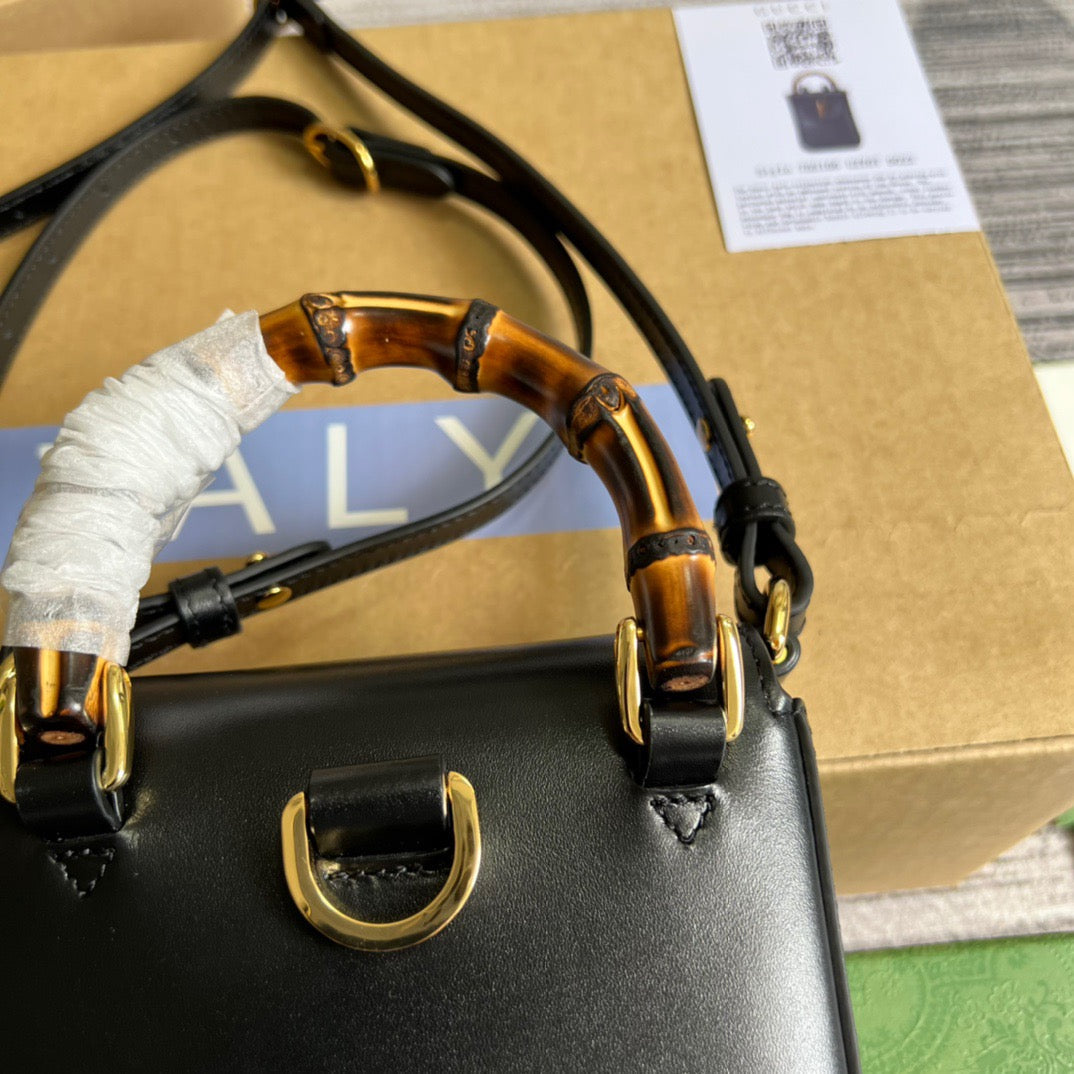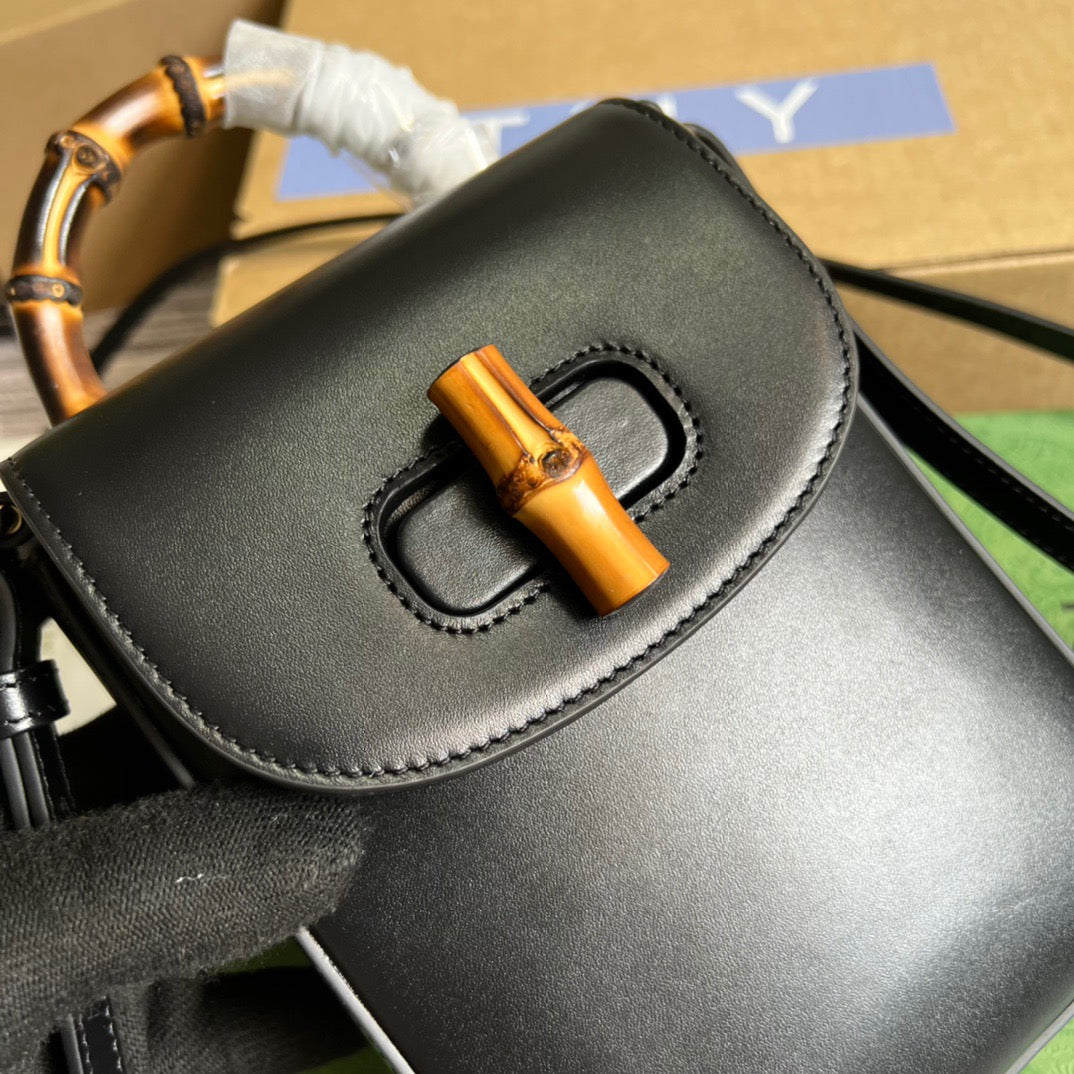 GG Bamboo Mini Handbag Black For Women, Women’s Bags 6.2in/16cm GG 702106 UZY0T 1000