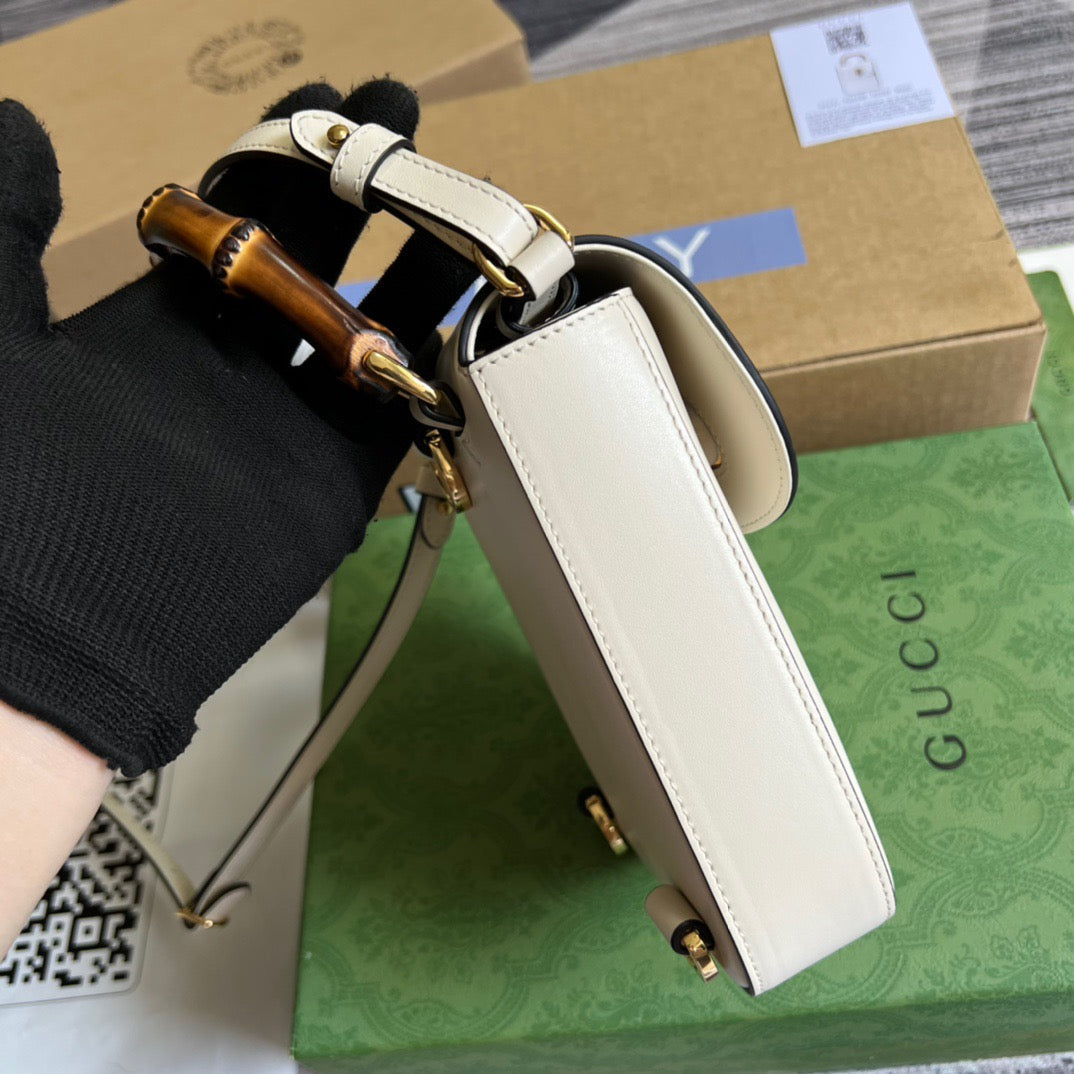 GG Bamboo Mini Handbag White For Women, Women’s Bags 6.2in/16cm GG 702106 UZY0T 9022