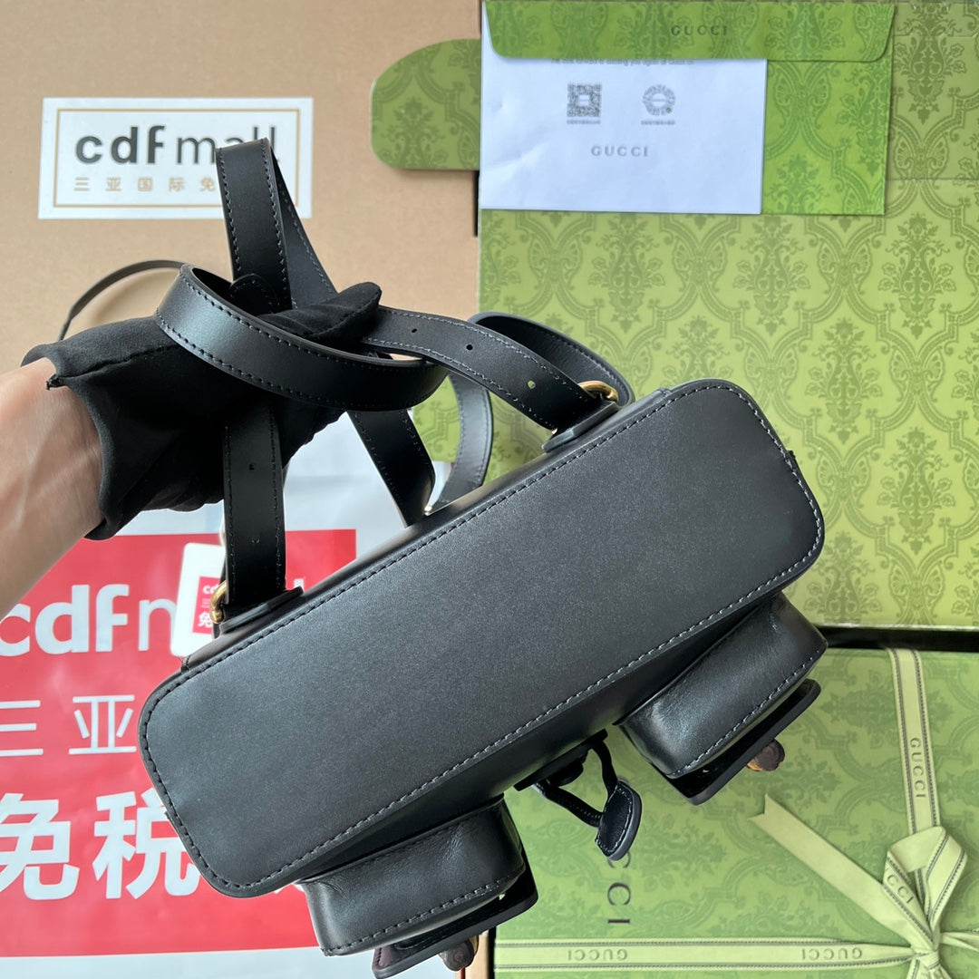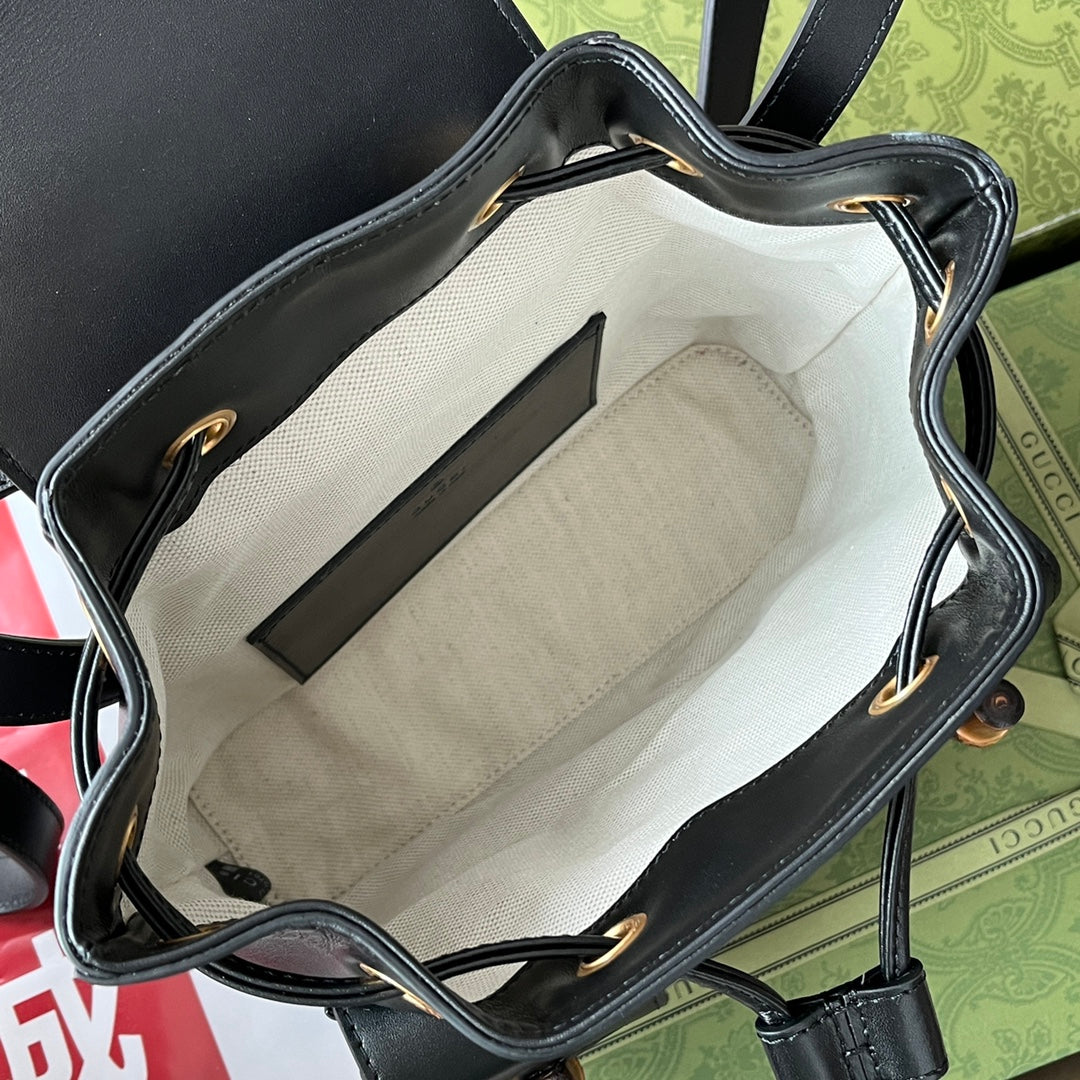 GG Bamboo Small Backpack Black For Women, Women’s Bags 8.6in/22cm GG 702101 UZY0T 1000