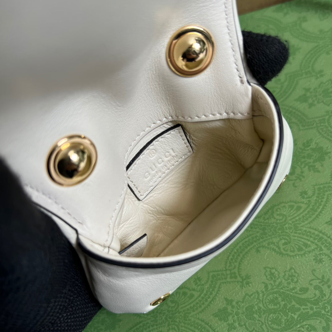 Coming from the House’s archives, a geometrically shaped version of the Interlocking G logo is reintroduced for GG Love Parade. Crafted from white , this card case wallet is enhanced with an adjustable strap, allowing it to be paired and styled in different ways. The versatile nature of the design adds a contemporary note to the archival hardware’s vintage aesthetic.