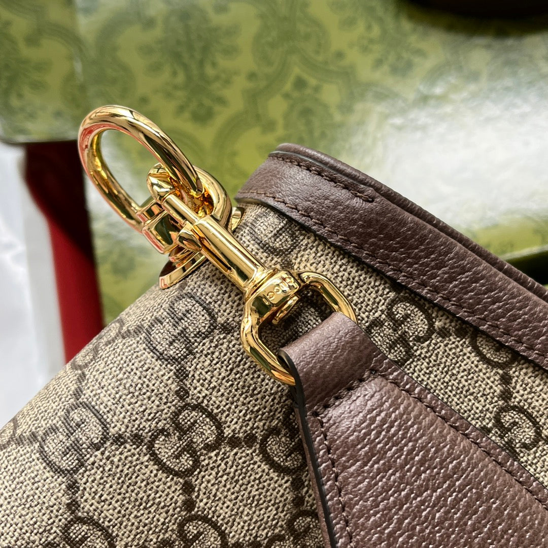 Coming from the House’s archives, a geometrically shaped version of the Interlocking G logo is reintroduced for GG Love Parade. The gold-toned hardware adds a defined vintage feel to the style, enriching the design with a timeless feel—mirroring the Hollywood glamour that shaped the fashion show. The min bag is completed by two interchangeable shoulder straps, in tonal or the Web stripe.