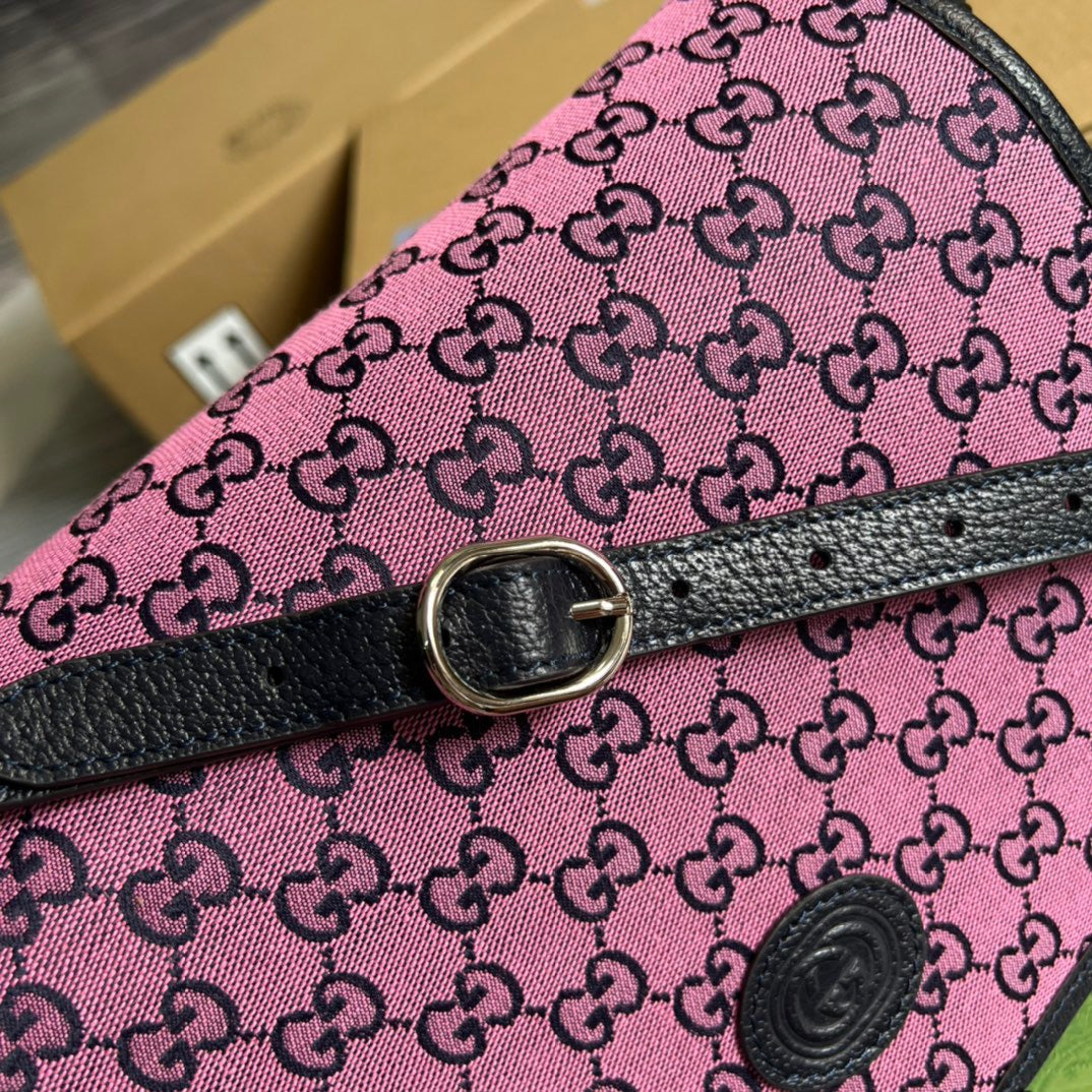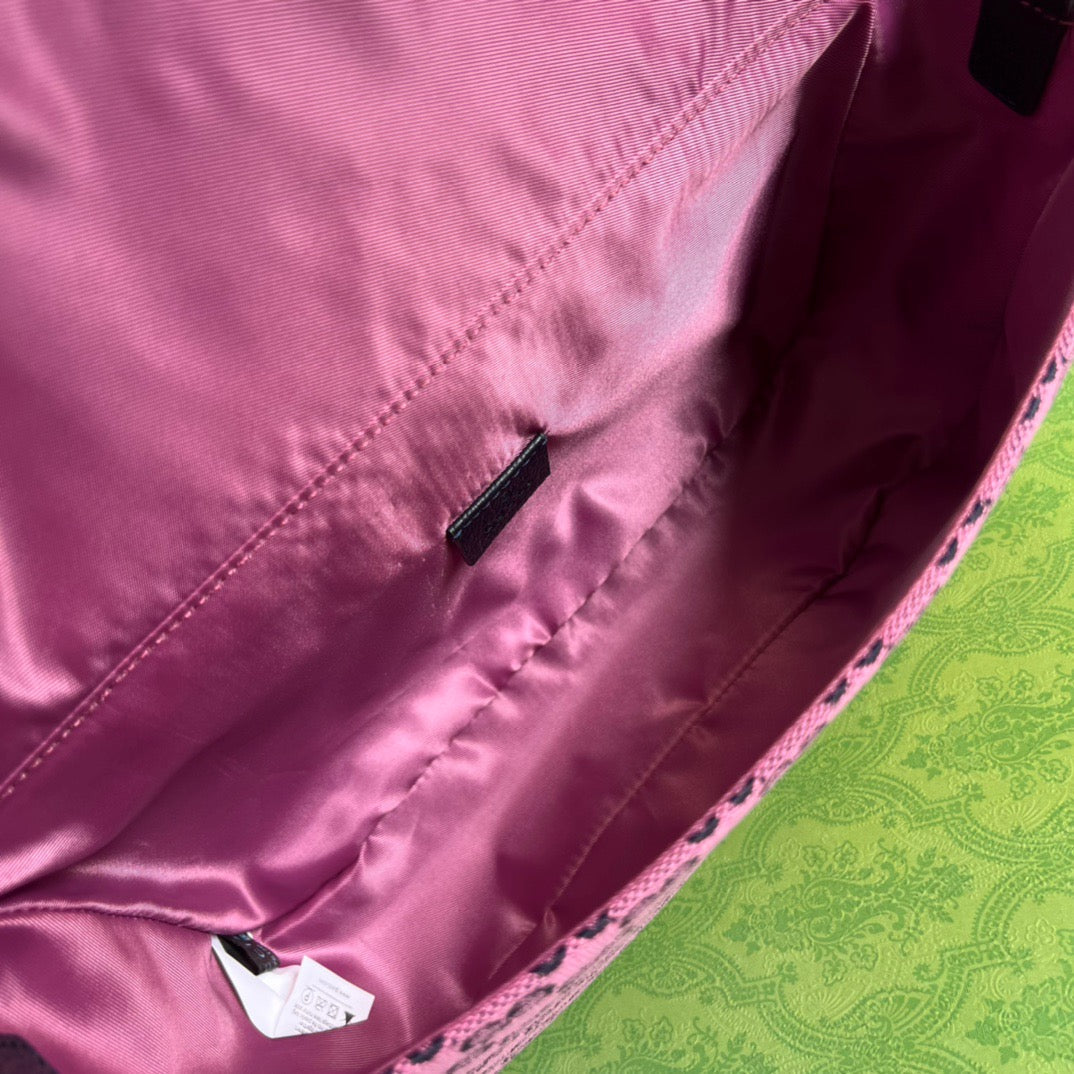 Embracing the new possibilities that lie within variations of the GG archives, various pieces throughout the collection provide a new lens through which to view the emblematic GG rhombi motif. Already an evolution of the House logo, it is once again reimagined in a series of bright colours-a theme that has become synonymous with the Creative Director’s vision. This GG Multicolour children’s messenger bag is presented in pink and blue canvas.;Pink and blue GG canvas; Interlocking G patch;Adjustable should strap with 15.7″ drop;Buckle closure;