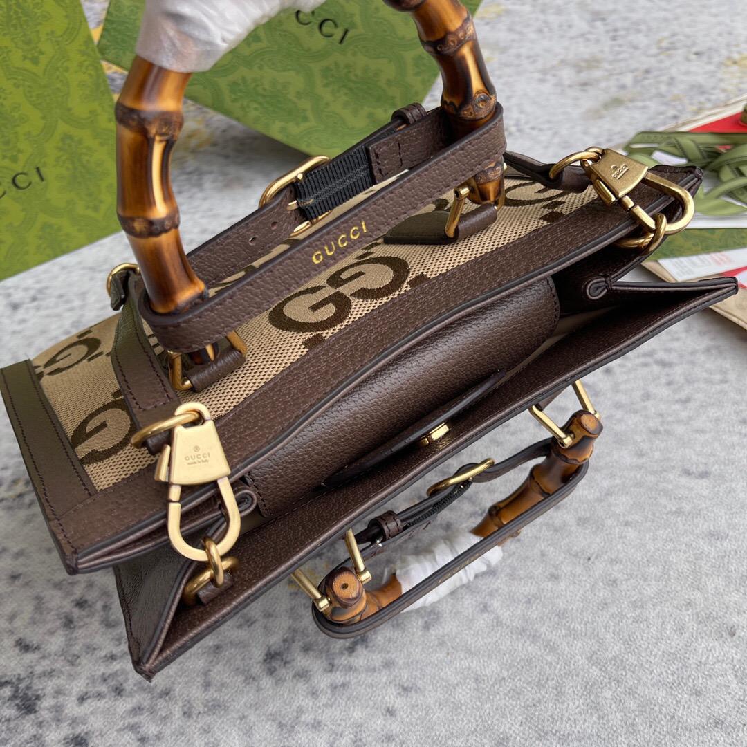 GG Diana Jumbo GG Small Tote Bag Camel And Ebony Jumbo GG Canvas Brown For Women 11in/28cm 660195 UKMFT 2672