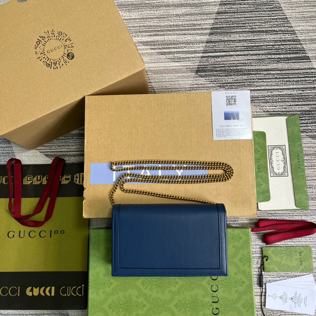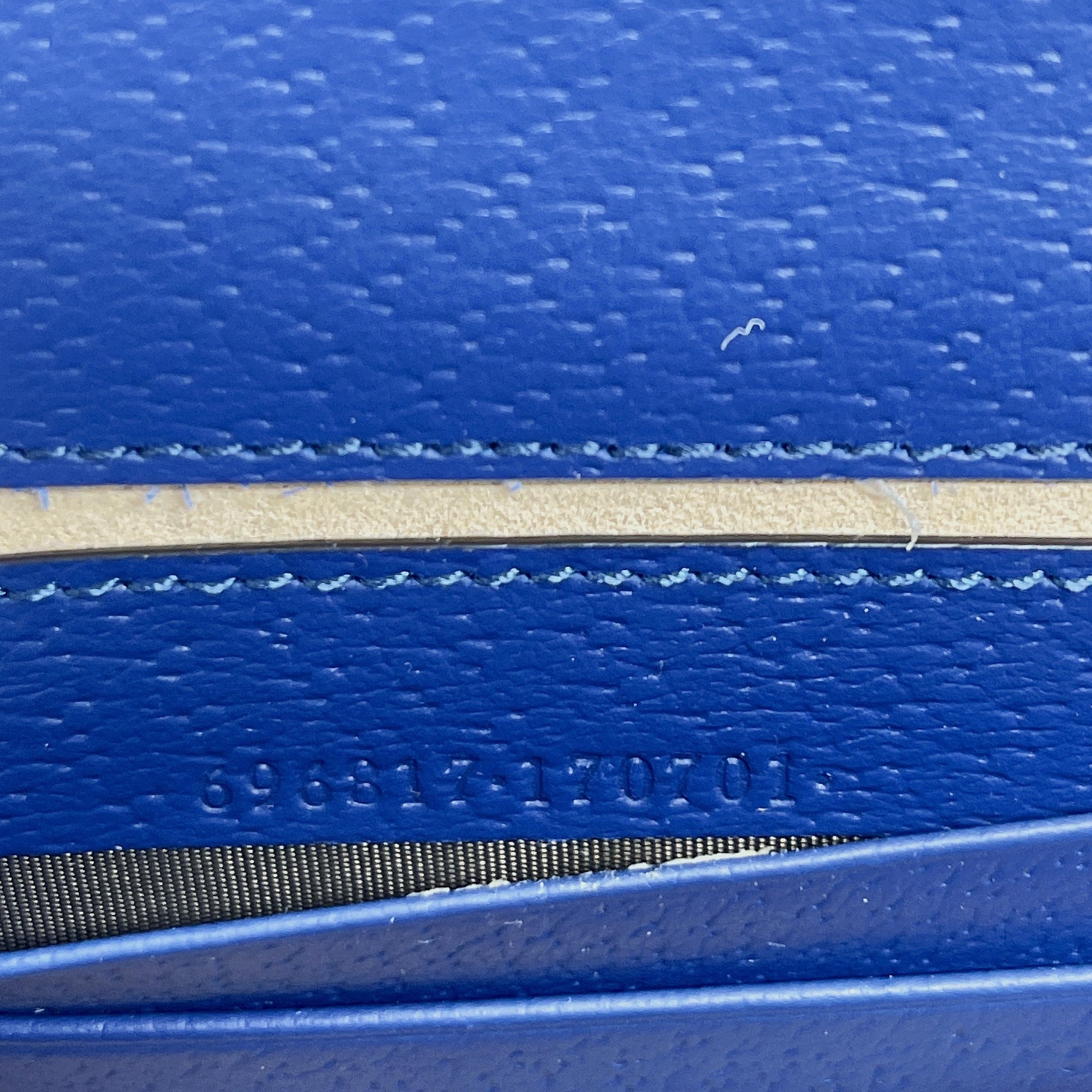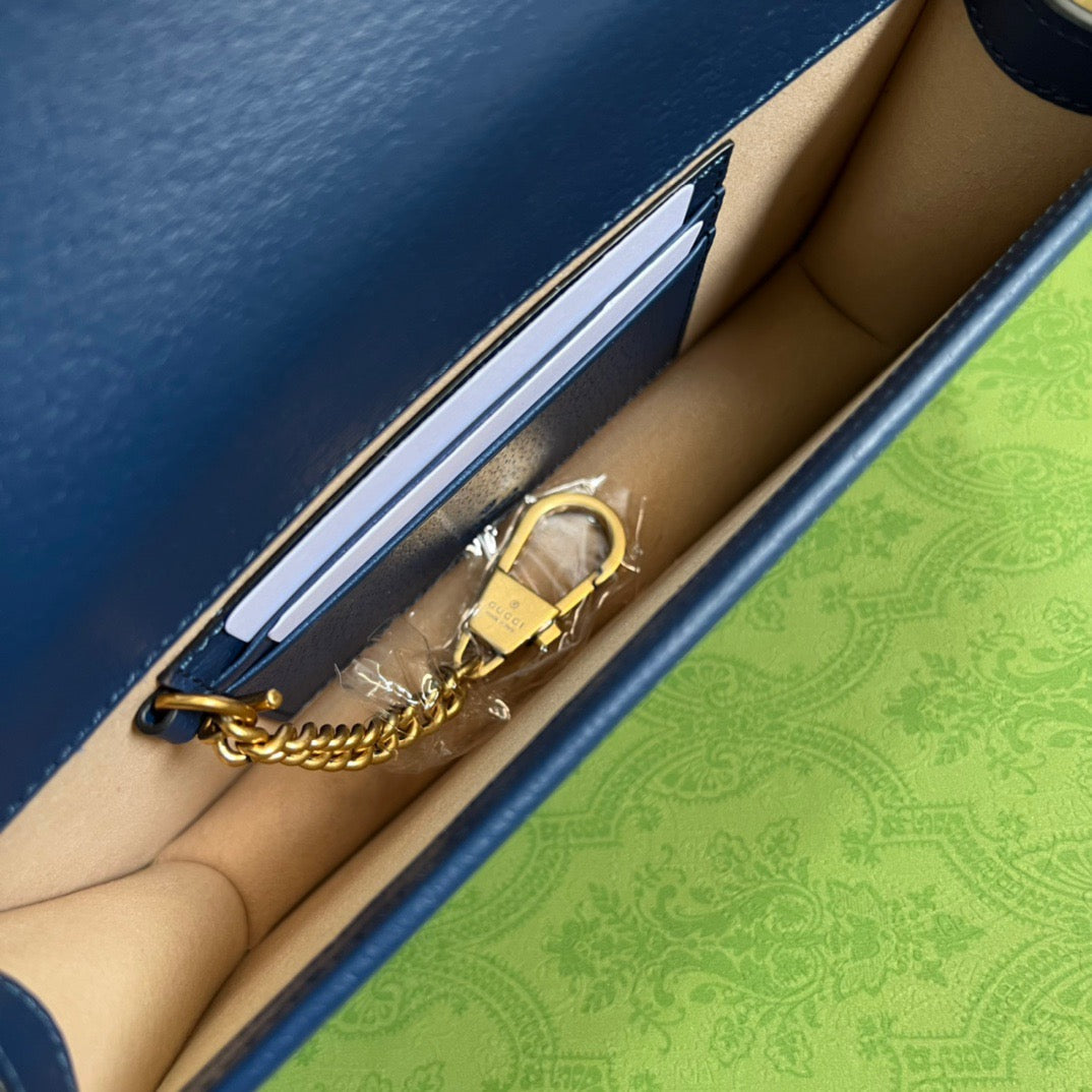 Paying homage to a material at the heart of GG’s heritage, this mini bag is defined by its bamboo closure. Crafted from smooth blue, the accessory is completed by GGo GG’s monogram hardware and a delicate chain strap.