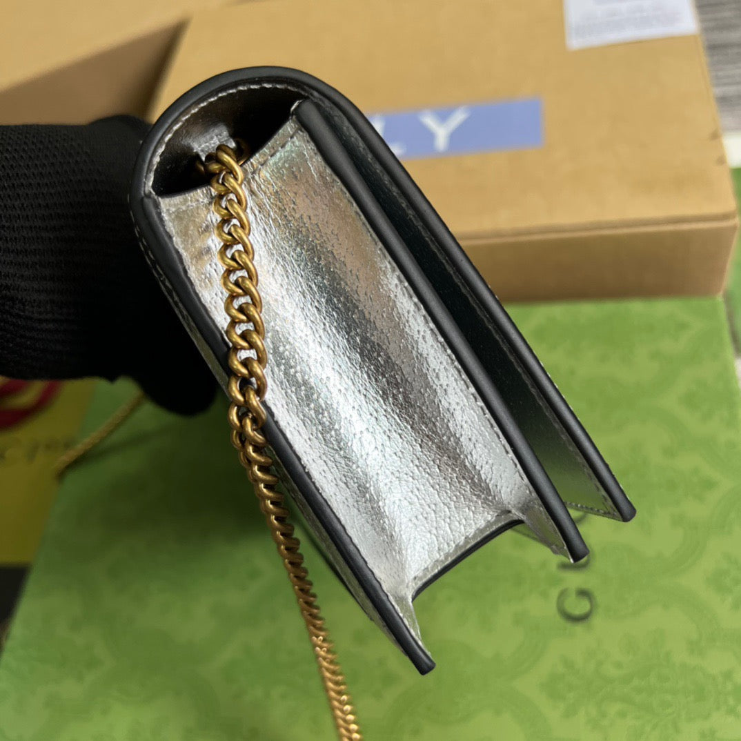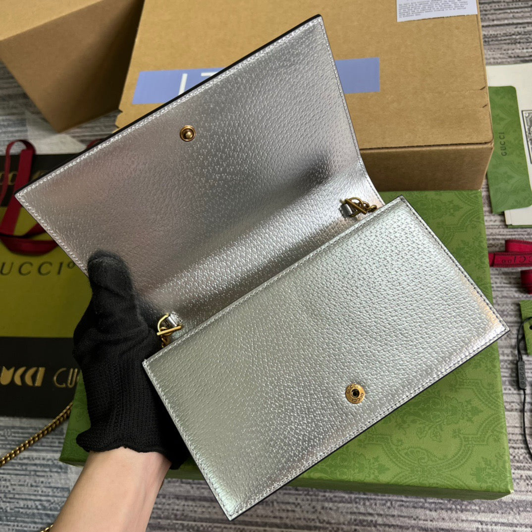 Paying homage to a material at the heart of GG’s heritage, this mini bag is defined by its bamboo closure. Crafted from smooth silver, the accessory is completed by GGo GG’s monogram hardware and a delicate chain strap.