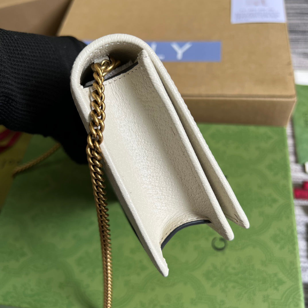 Paying homage to a material at the heart of GG’s heritage, this mini bag is defined by its bamboo closure. Crafted from smooth white, the accessory is completed by GGo GG’s monogram hardware and a delicate chain strap.