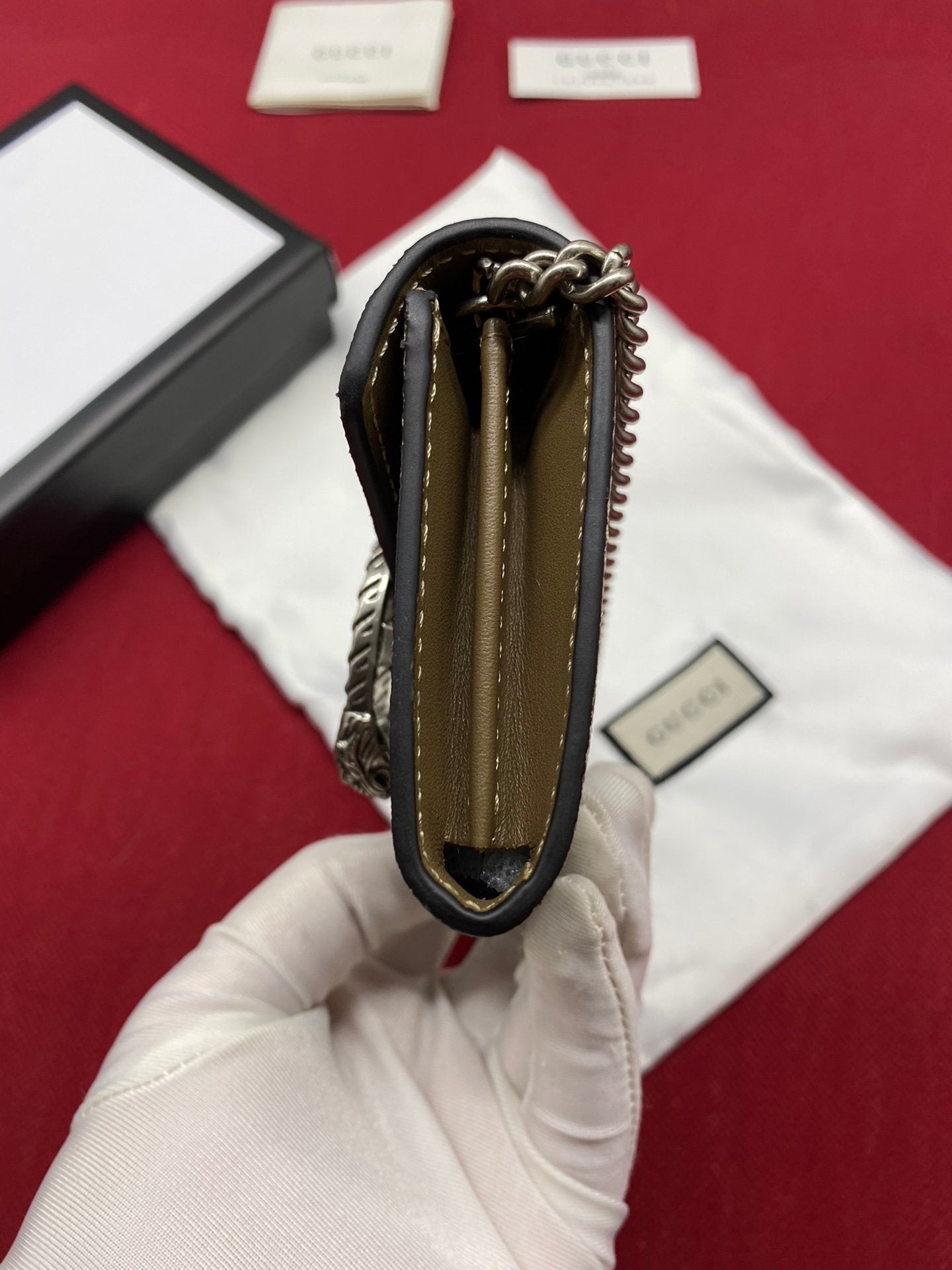 GG Dionysus GG Supreme Chain Wallet Beige/Ebony GG Supreme Canvas For Women 4in/11cm GG