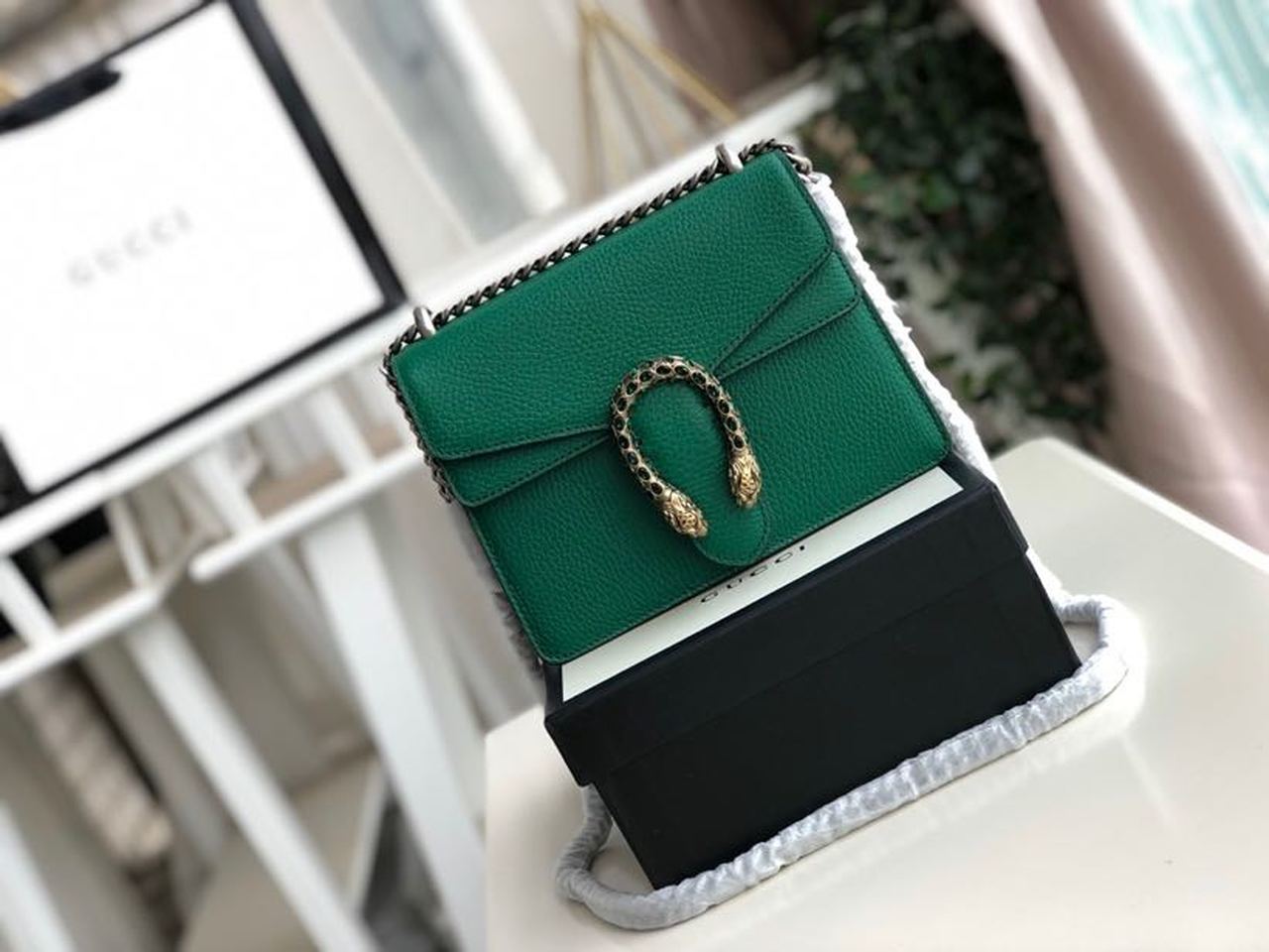 gg Dionysus Mini Bag Green Metal-Free Tanned For Women 7.5in/20cm gg 421970