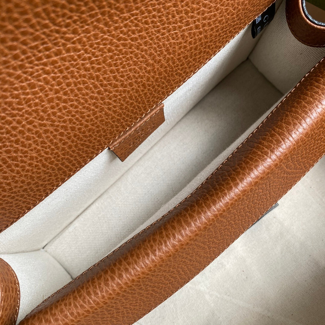 A message about leaving fashion’s old rules behind, the Epilogue collection conveys the idea that pieces should be timeless–not just in fashion for one season. Among the designs are Alessandro Michele’s most emblematic styles and motifs from the past 5 years, like the Dionysus. One of the House’s Beloved lines, the bag is synonymous with its textured tiger head closure. Here, it appears as a small shoulder bag presented in organic GG jacquard denim.