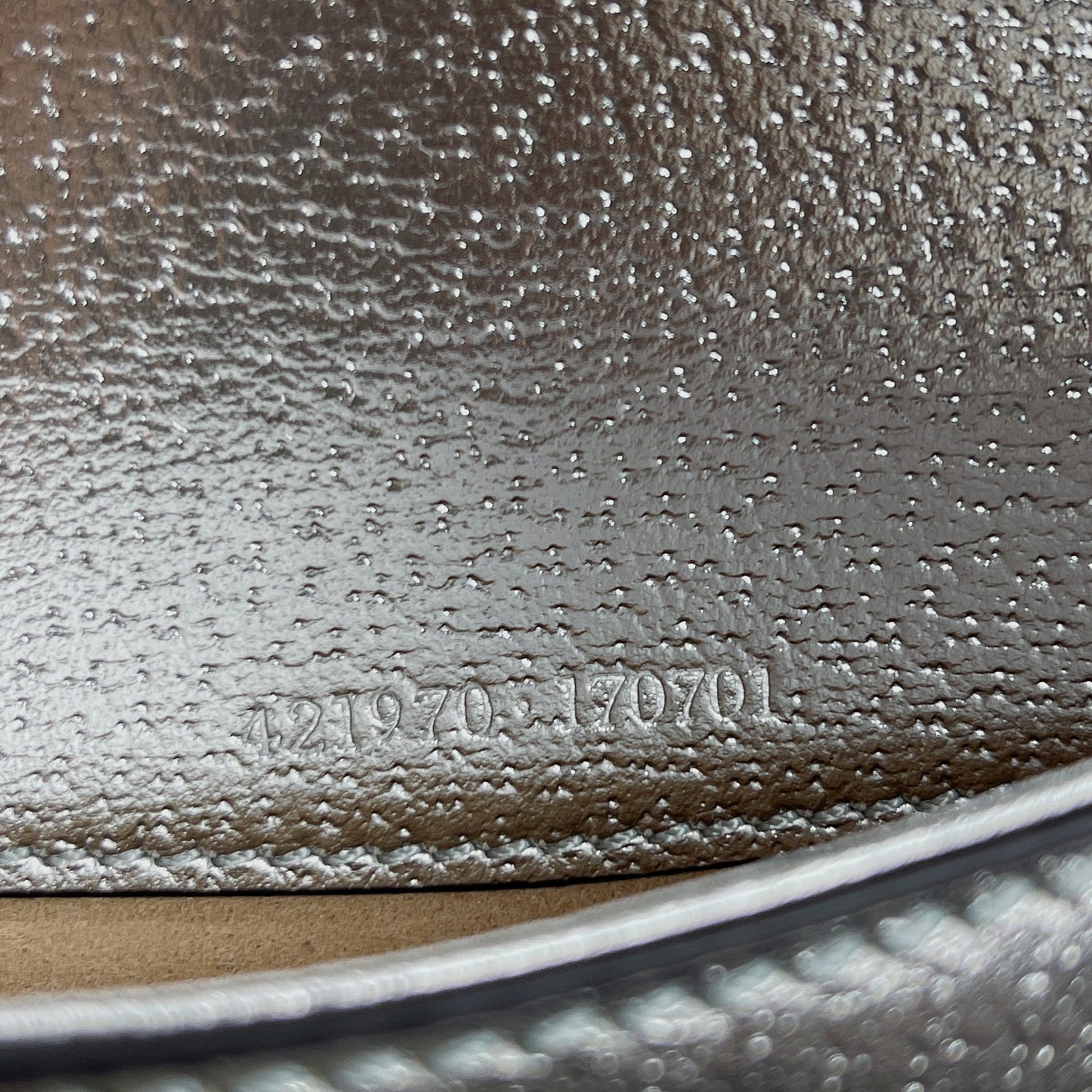 The structured super mini bag is introduced in metallic silver , with a key ring that can be used to attach the bag to a separate larger bag. The closure features the textured tiger head spur—the unique detail defines the line, referencing the Greek god Dionysus, who in myth is said to have crossed the river Tigris on a tiger sent to him by Zeus.