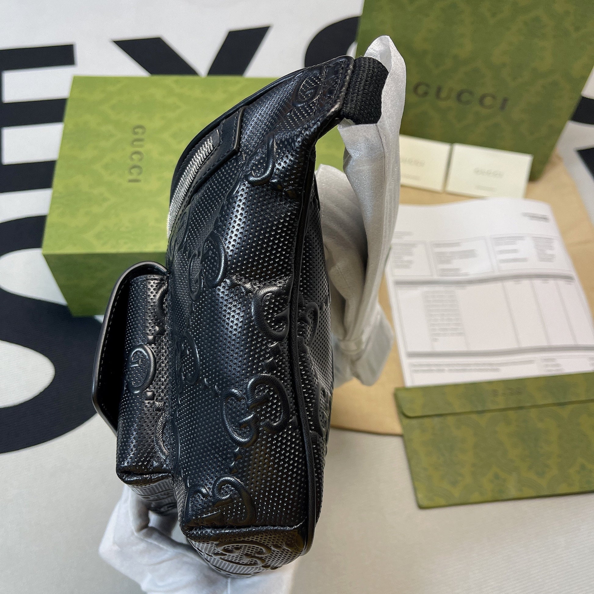 gg Embossed Belt Bag Black gg Embossed For Men 11in/28cm gg 645093 1W3CN 1000