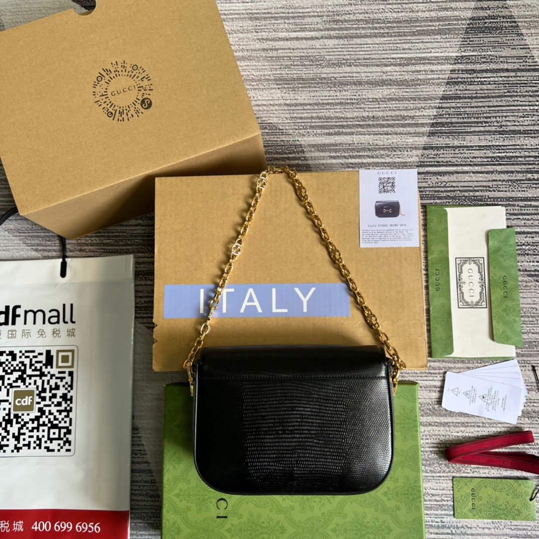 GG Horsebit 1955 Lizard Mini Bag Black For Women, Women’s Bags 8in/20cm GG