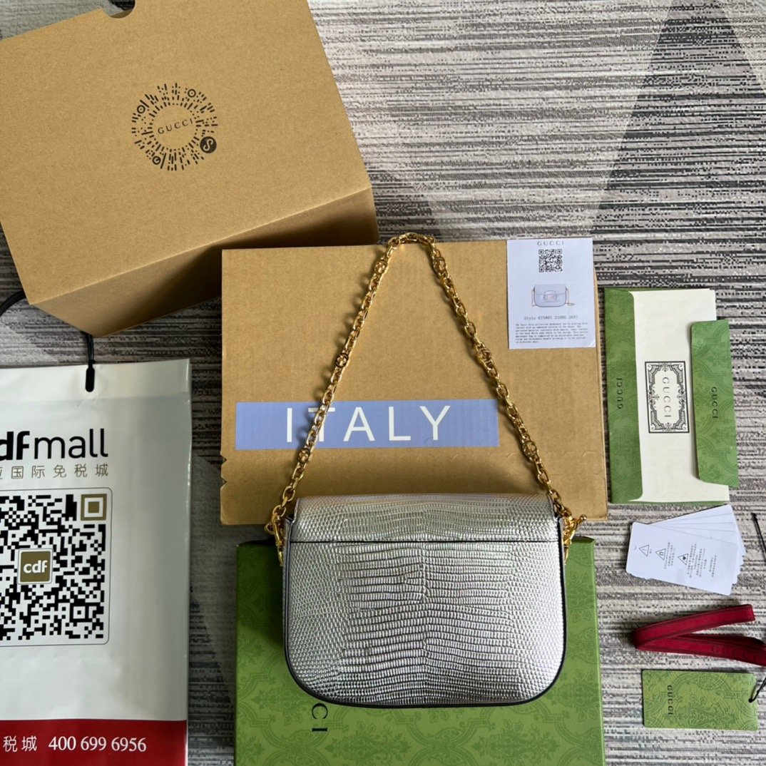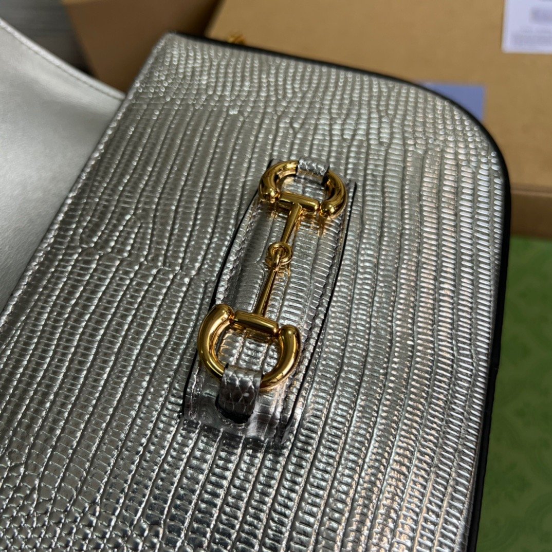 GG Horsebit 1955 Lizard Mini Bag Silver For Women, Women’s Bags 8in/20cm GG