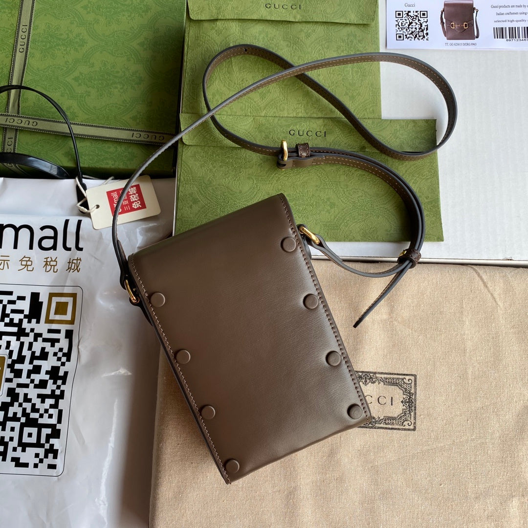 GG Horsebit 1955 Mini Bag Brown For Women And Men 6.7in/17cm GG 625615 0YK0G 2528