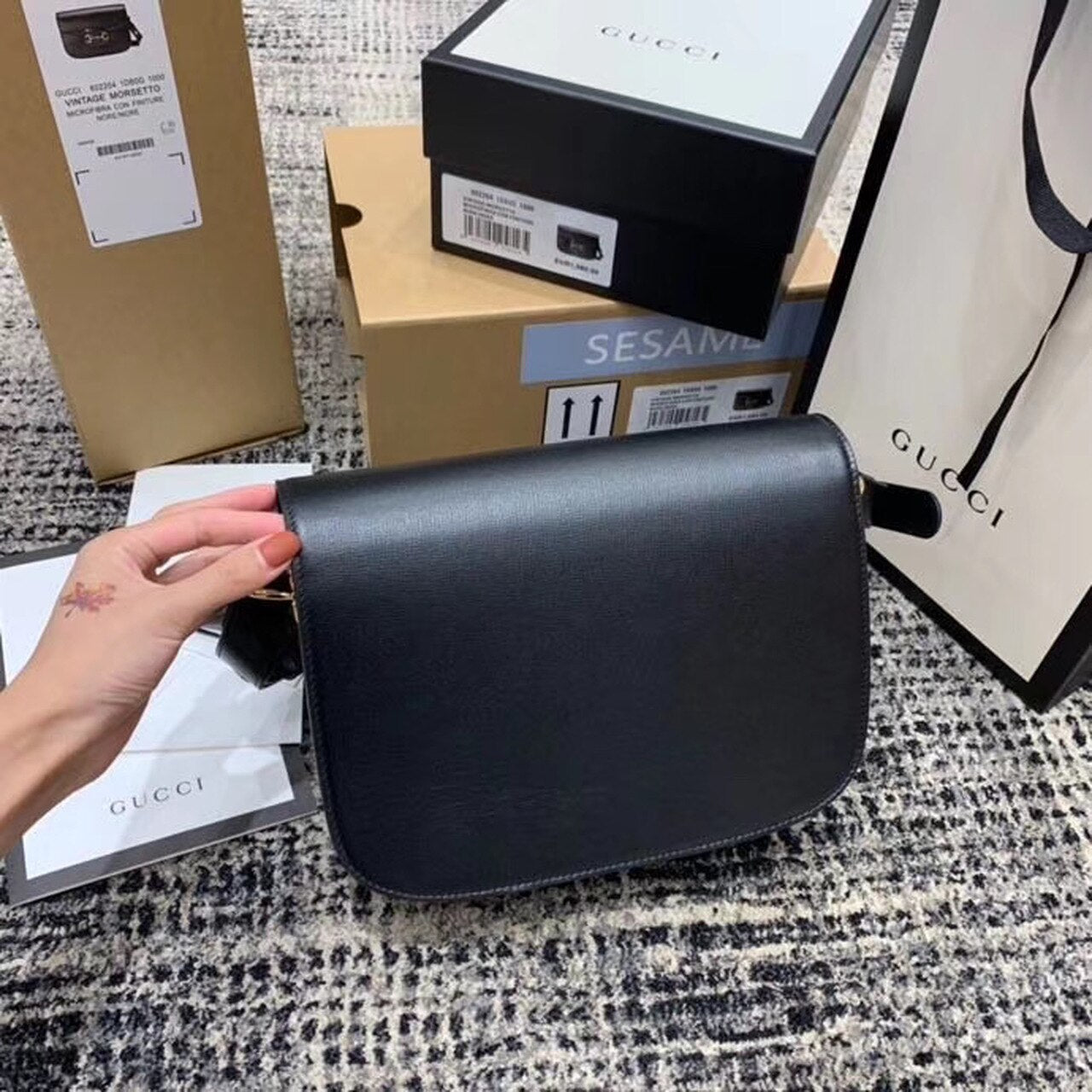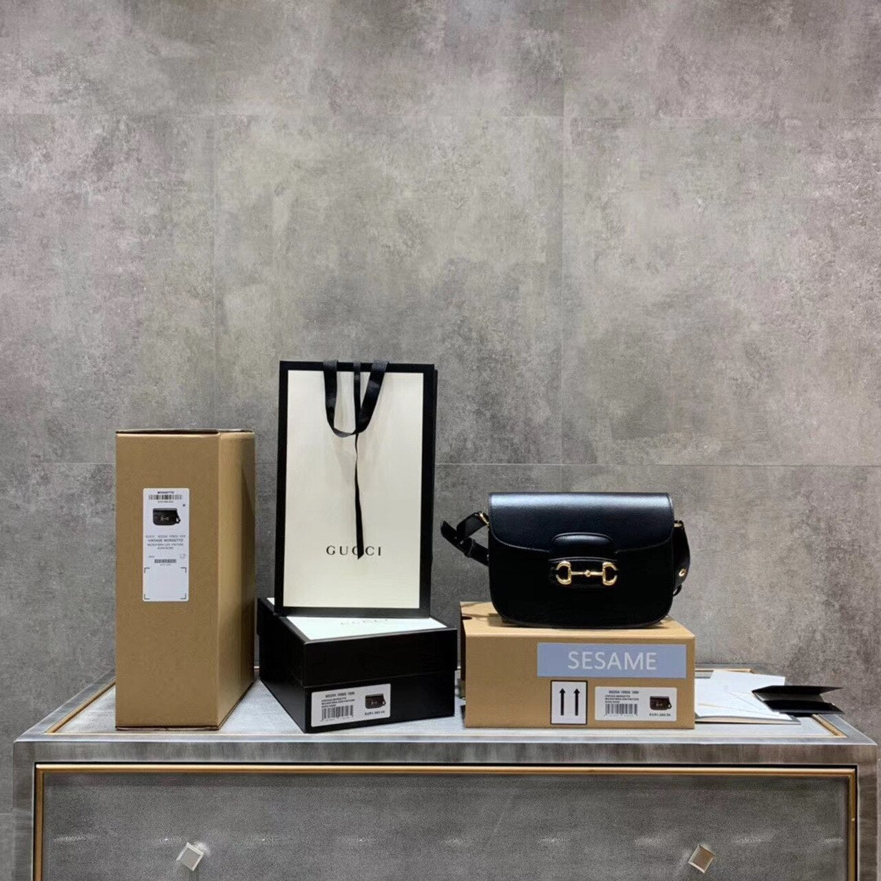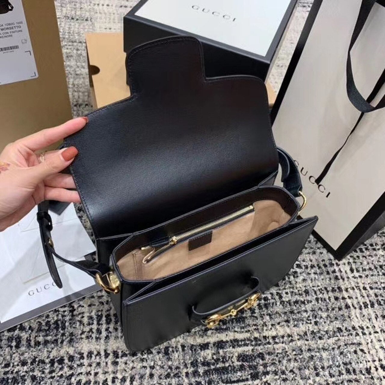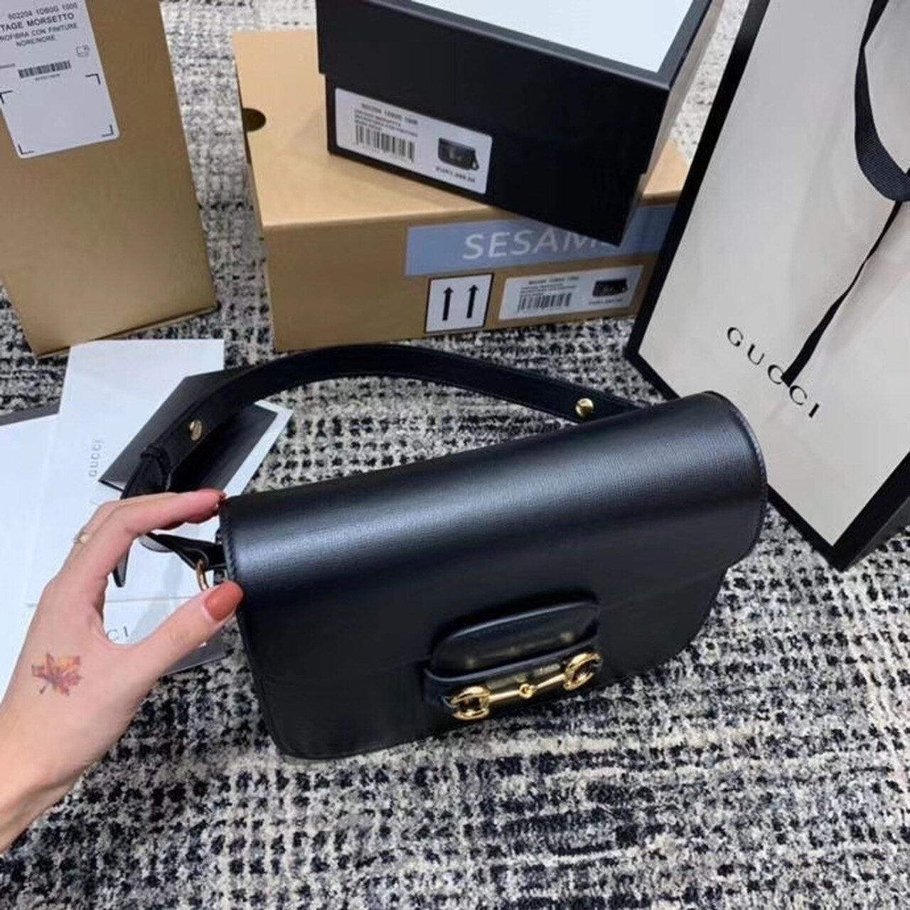GG Horsebit 1955 Shoulder Bag Black Textured With A Vintage Effect For Women 9.8in/25cm GG 602204 1DB0G 1000