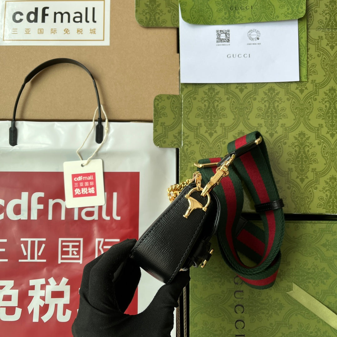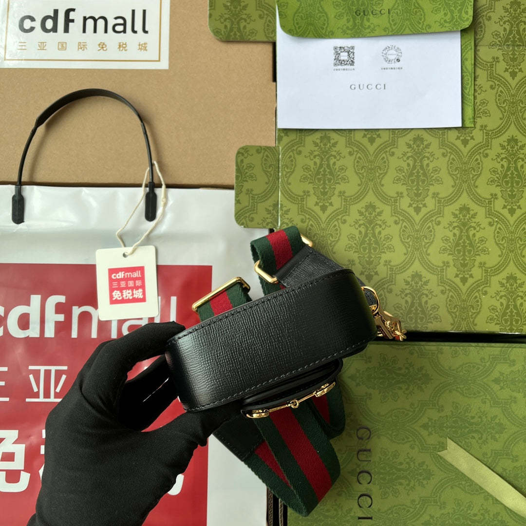 GG Horsebit 1955 Strap Wallet Black For Women, Women’s Bags 4.7in/12cm GG 699760 18YSG 1060