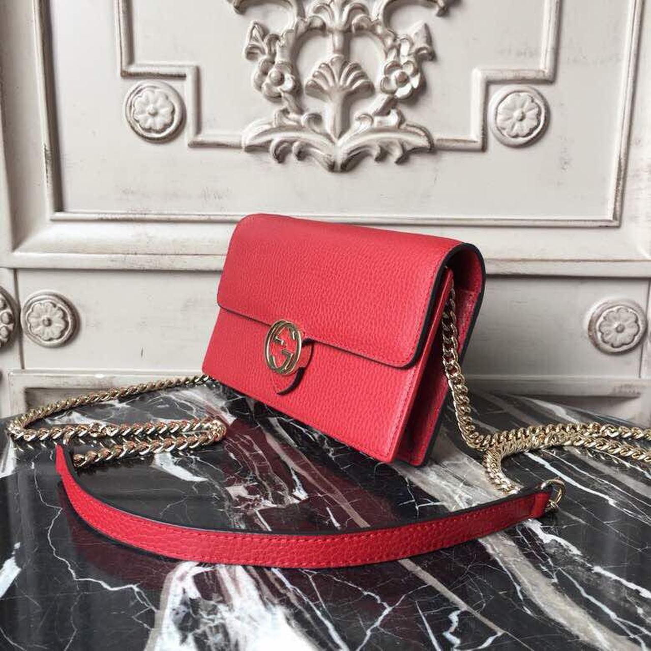 gg Interlocking gg Crossbody Handbag Grained Calfskin Spring/Summer Collection Red For Women 7.5in/19cm gg 510304