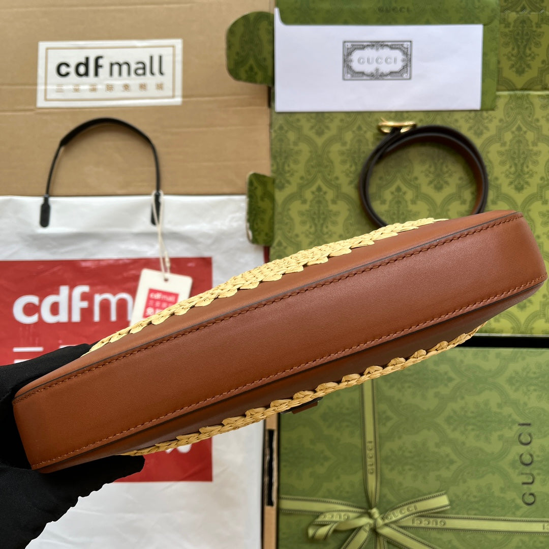 Celebrating the timeless charm of Hollywood, the GG Love Parade reinterprets the classic elements of the House Archives. A fashion accessory featuring a distinctive crescent shape and a G-shape hook closure. Soft materials and heritage metal decorations combine to create a delicate vintage sensibility.