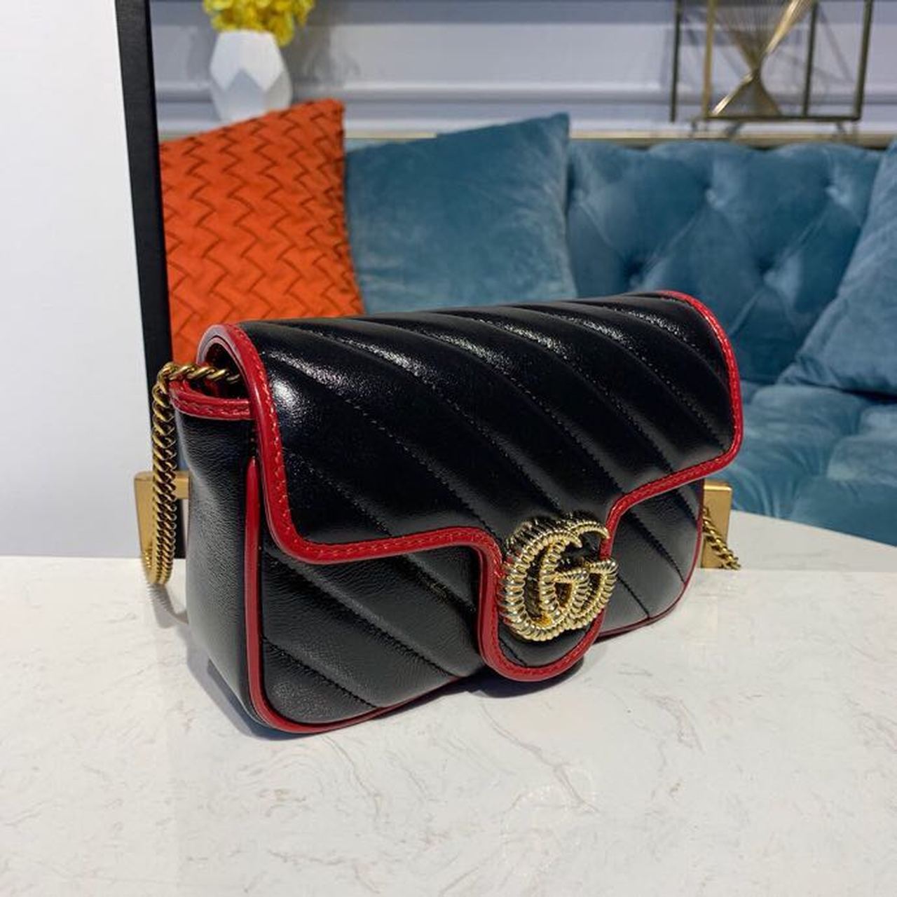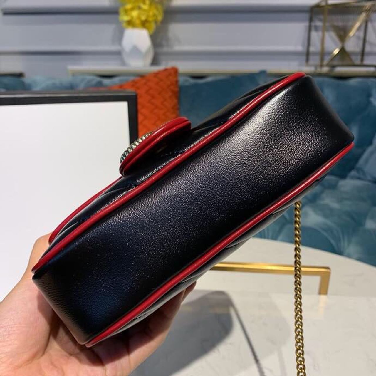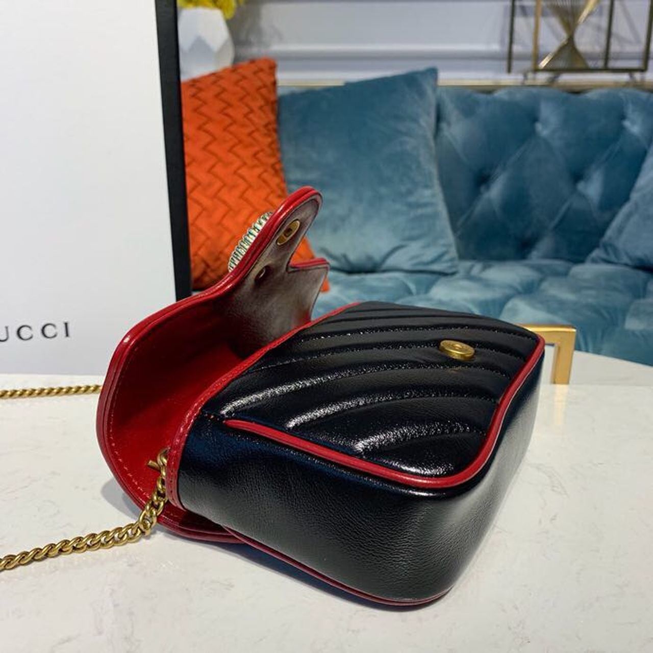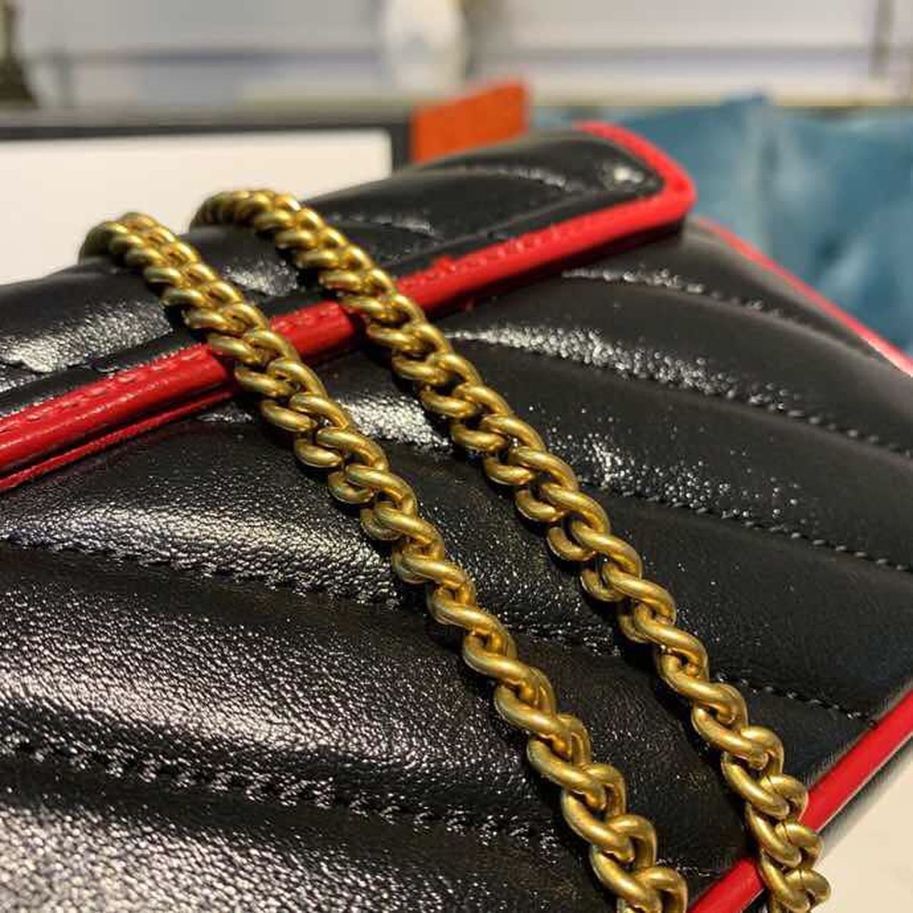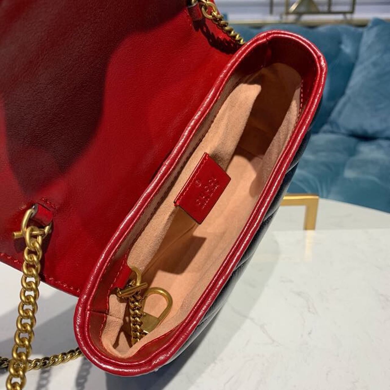 GG Marmont Diagonal Matelass Shoulder Bag Black Red For Women 10in/26cm GG 443497
