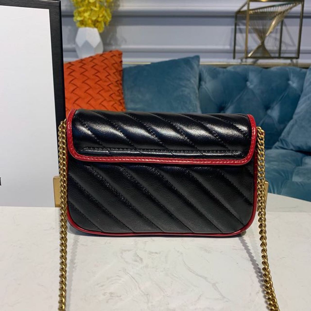 gg Marmont Diagonal Matelass Shoulder Bag Black Red For Women 10in/26cm gg 443497