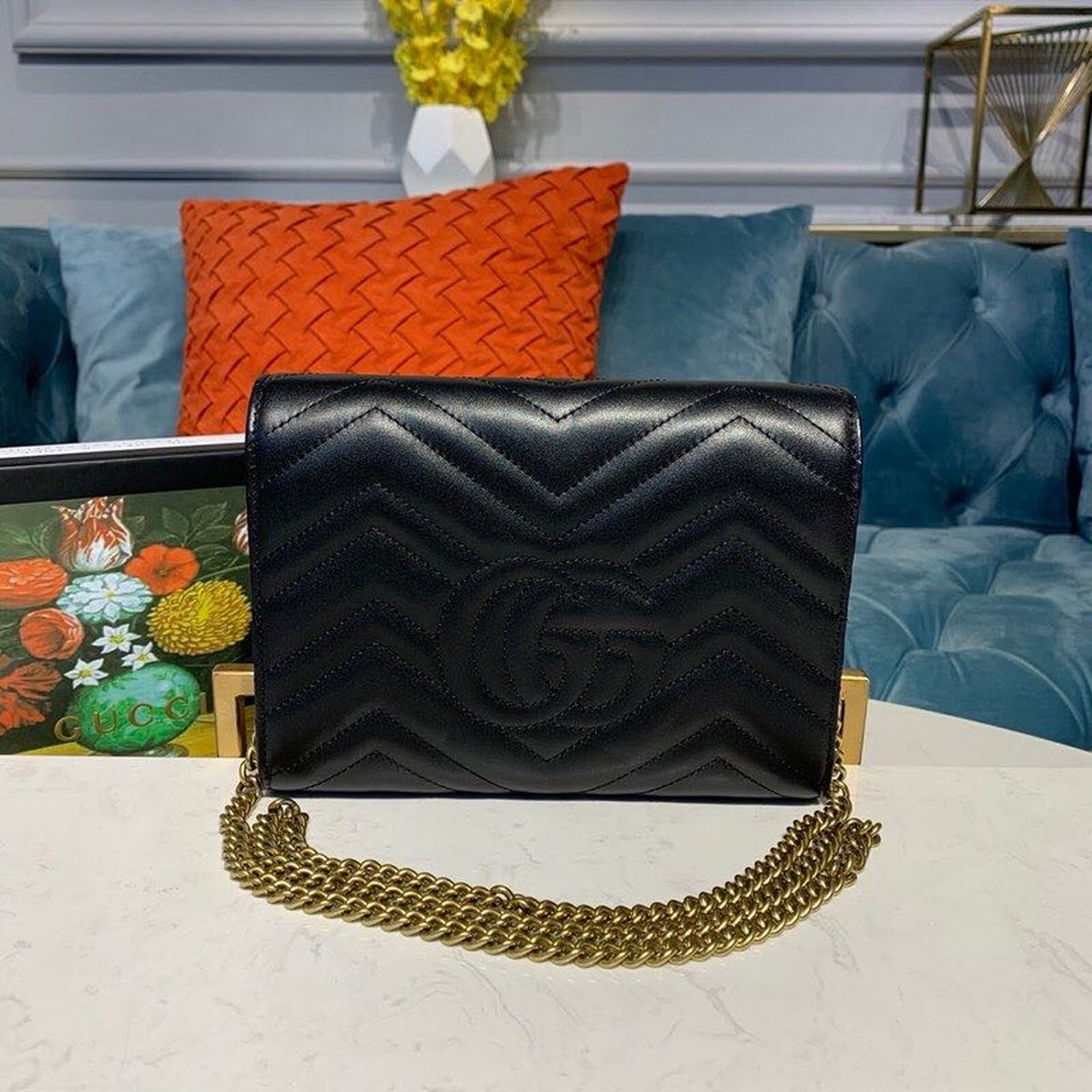 gg Marmont Matelassé Mini Bag Black Matelassé Chevron With gg On The Back For Women 8in/20cm gg 474575 DTD1T 1000