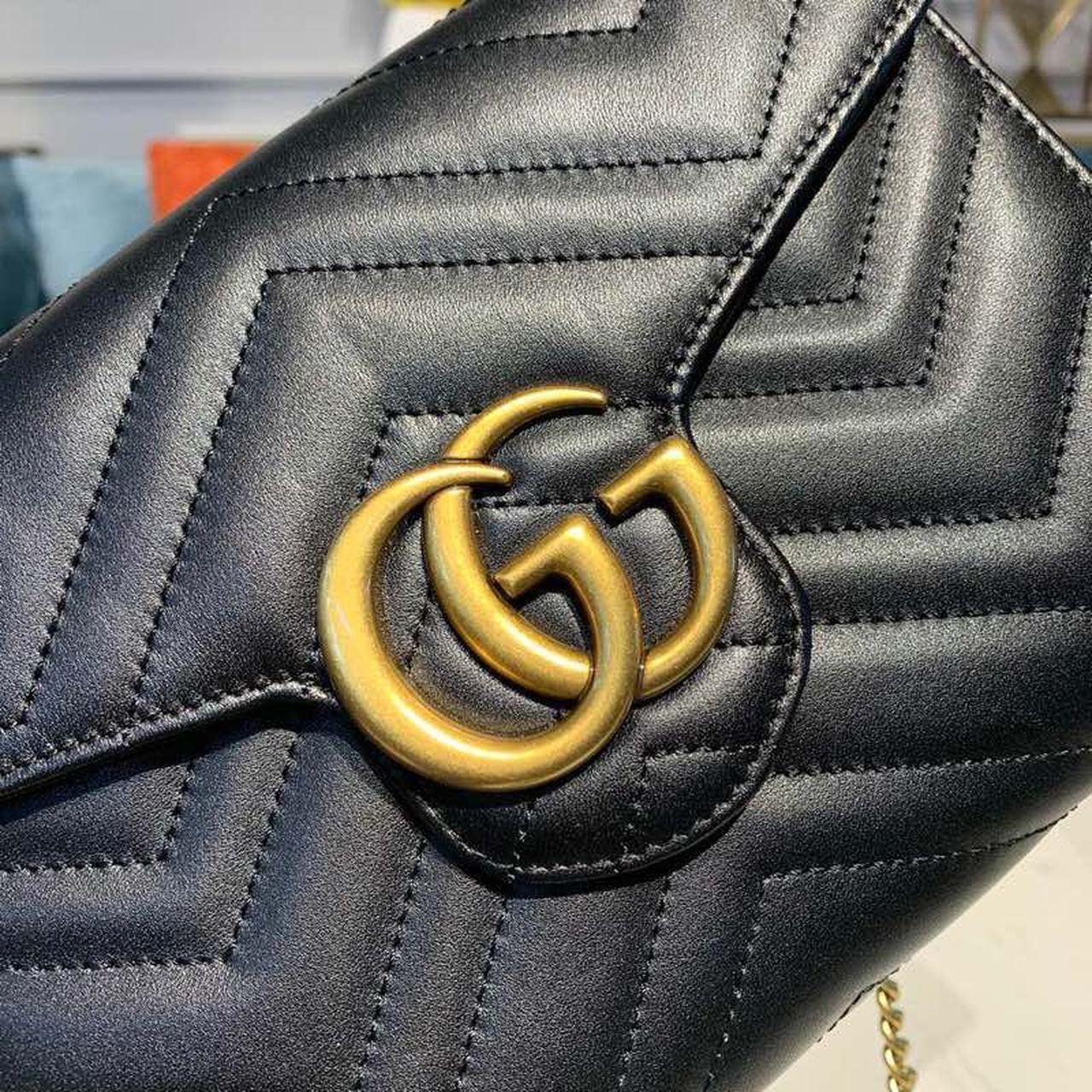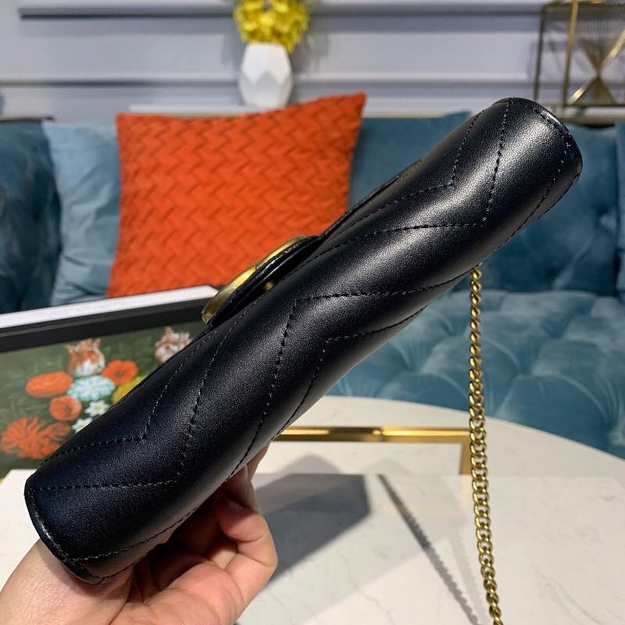 GG Marmont Matelassé Mini Bag Black Matelassé Chevron With GG On The Back For Women 8in/20cm GG 474575 DTD1T 1000